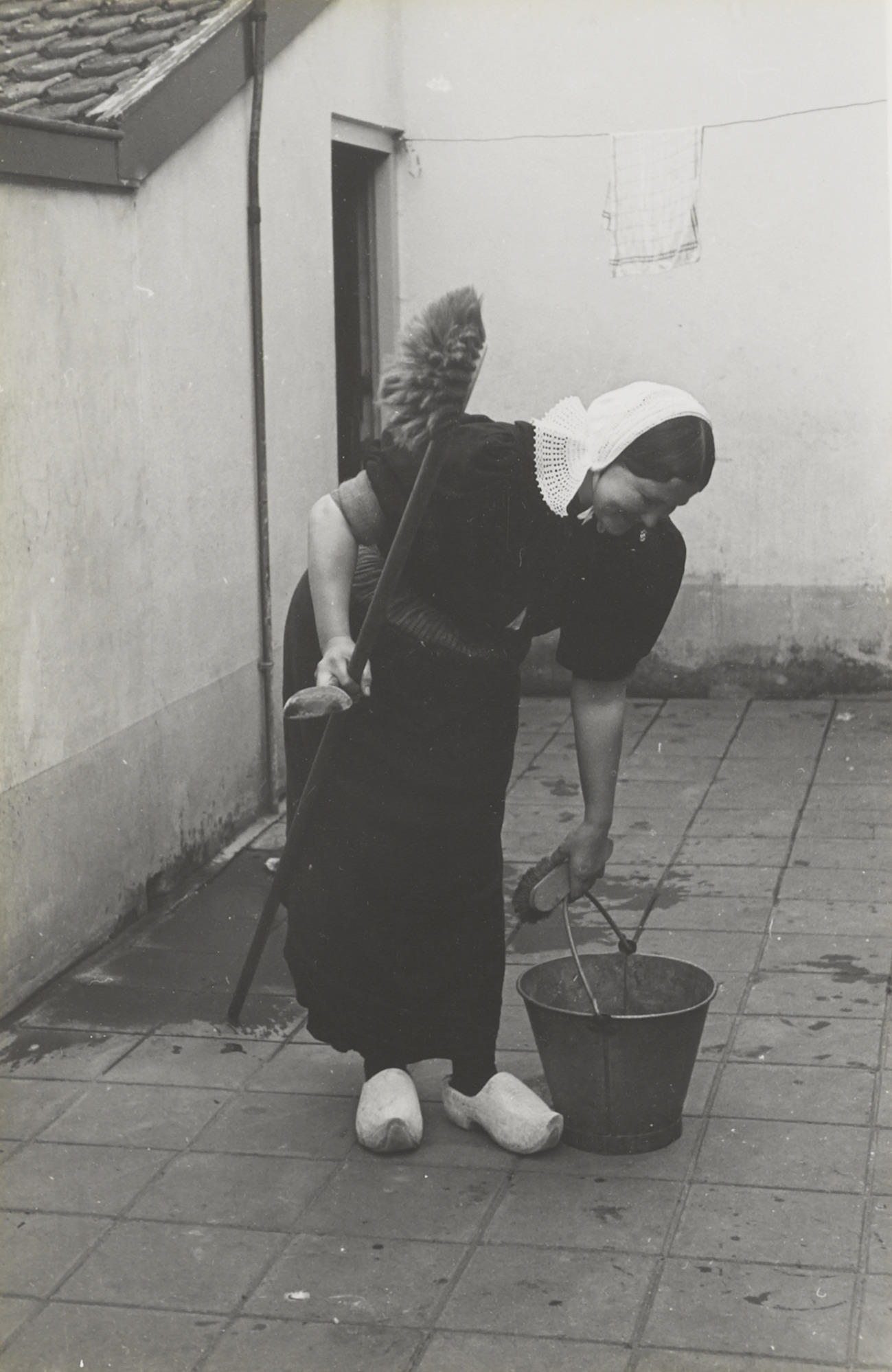 Vrouw in streekdracht, Huizen, 1945 (zwart-wit foto)