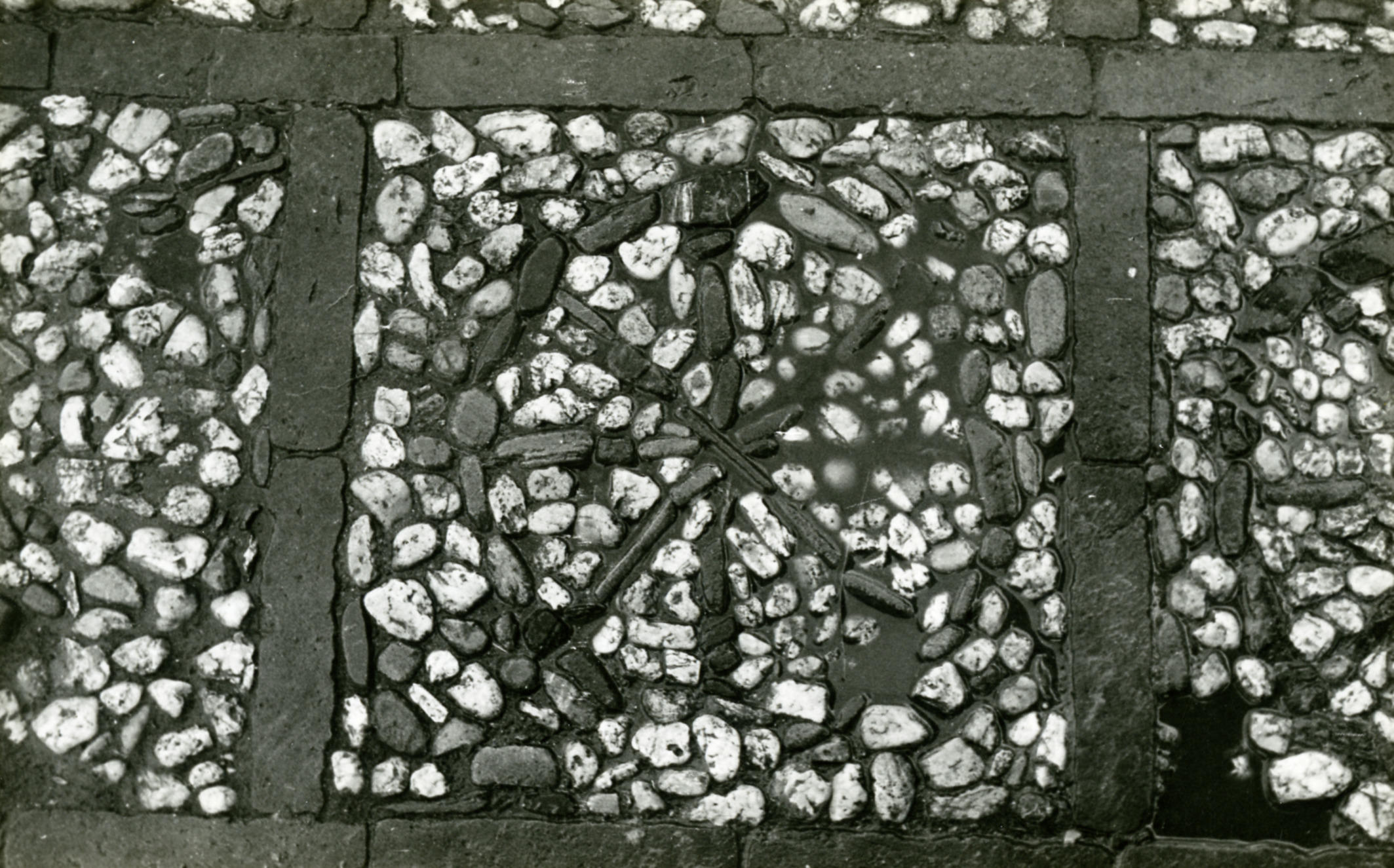 Detail van een keitjesvloer uit Geesteren, 1945 (zwart-wit foto)