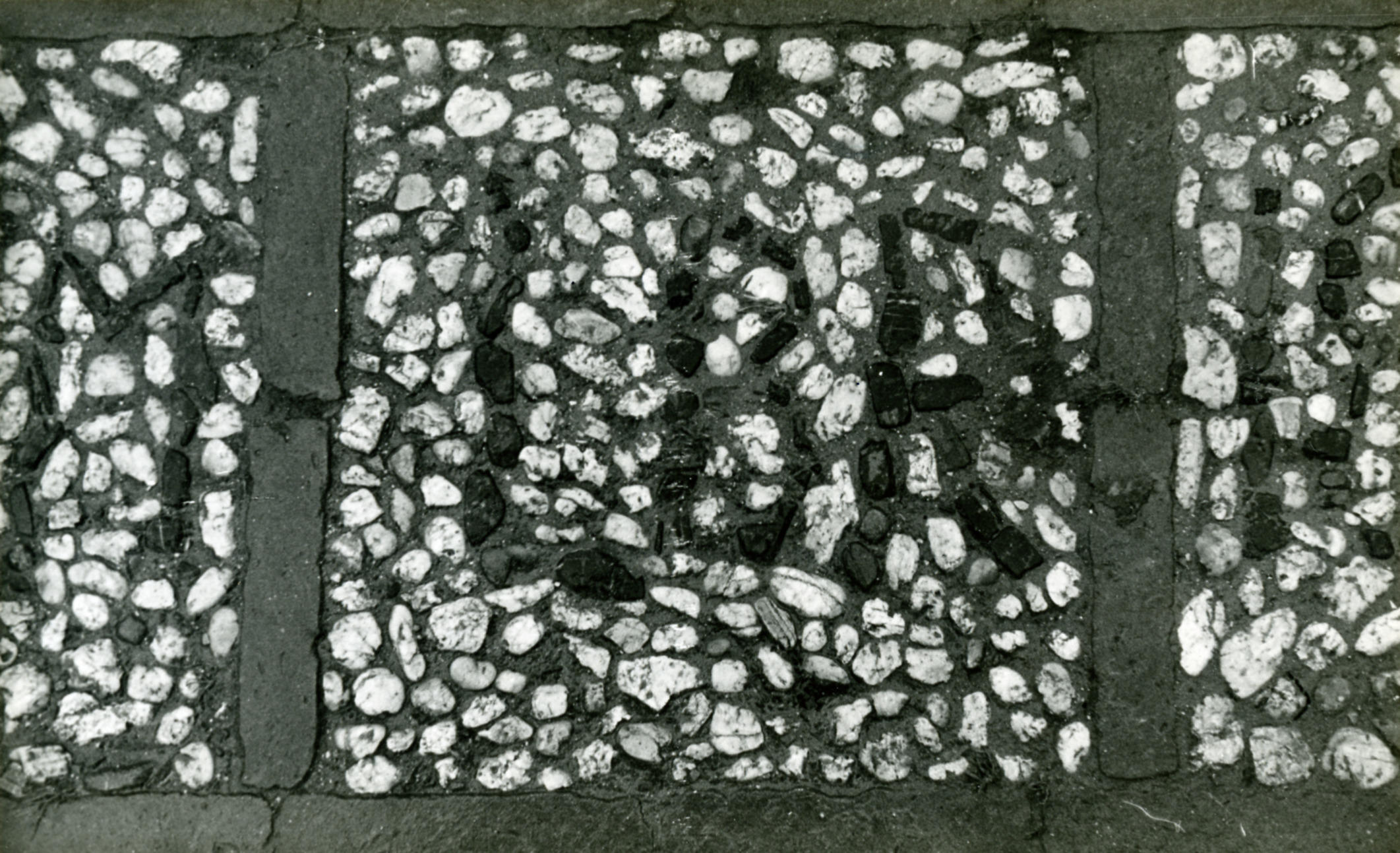 Detail van een keitjesvloer uit Geesteren, 1945 (zwart-wit foto)