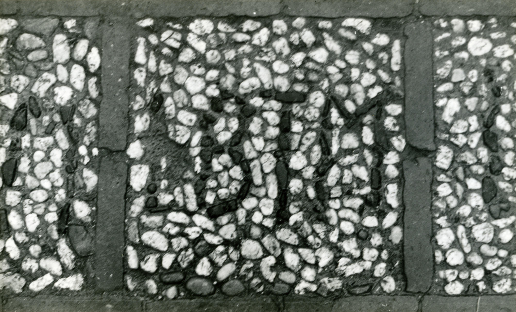 Detail van een keitjesvloer uit Geesteren, 1945 (zwart-wit foto)