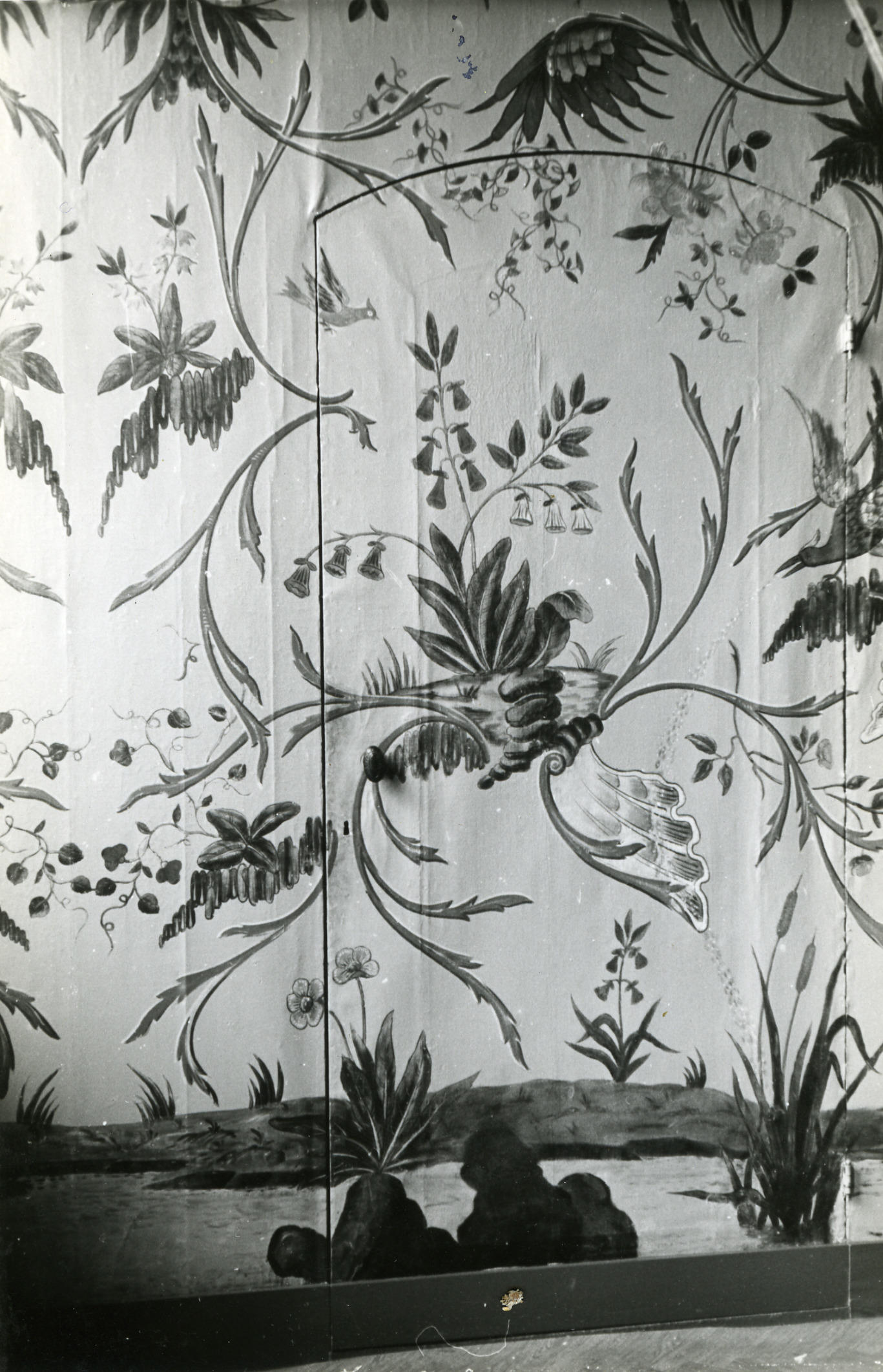 Wandbeschildering in het raadhuis, Zaandijk, 1945 (zwart-wit foto)