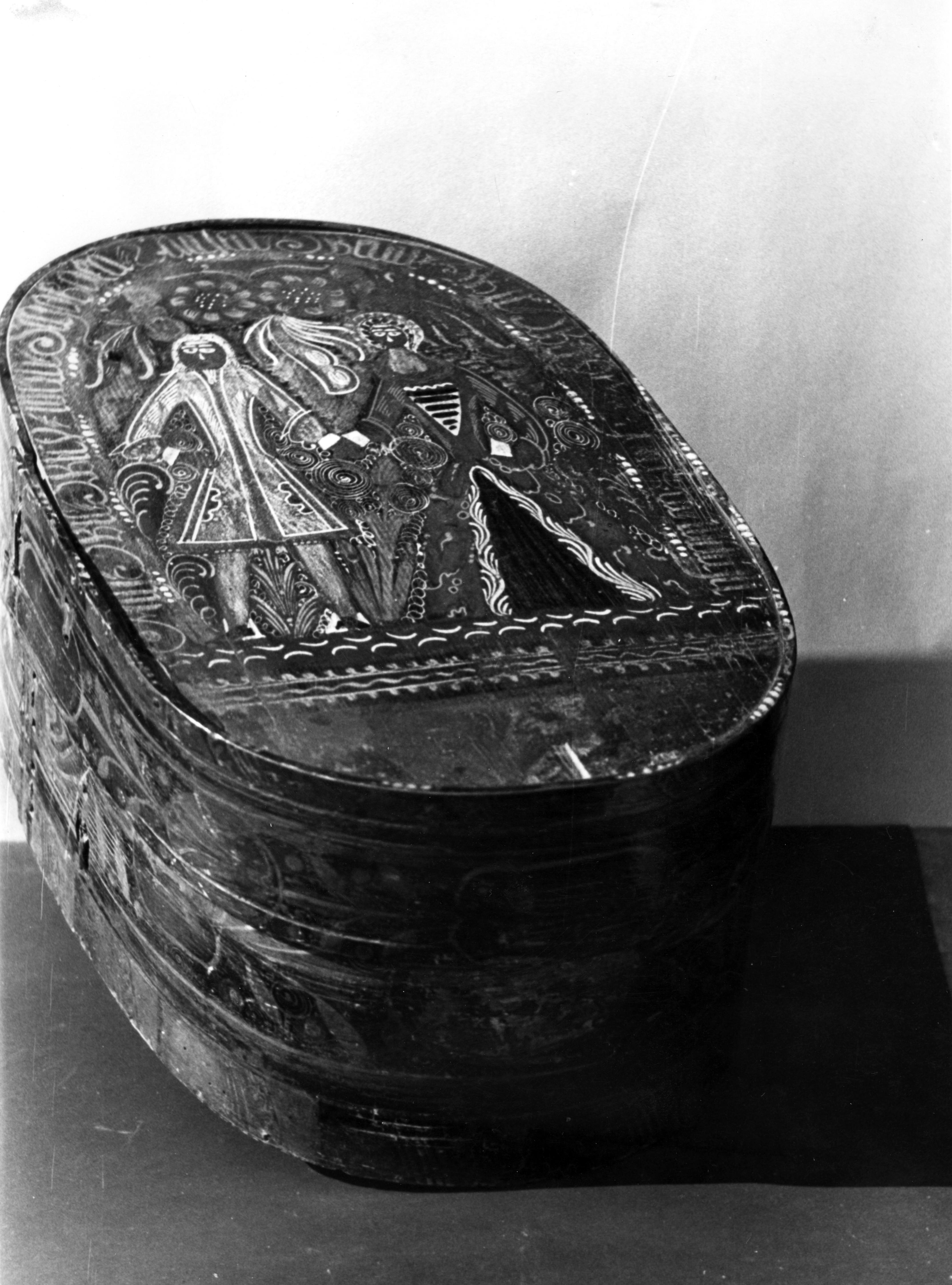 Beschilderde spanen doos, Marken, 1943 (zwart-wit foto)