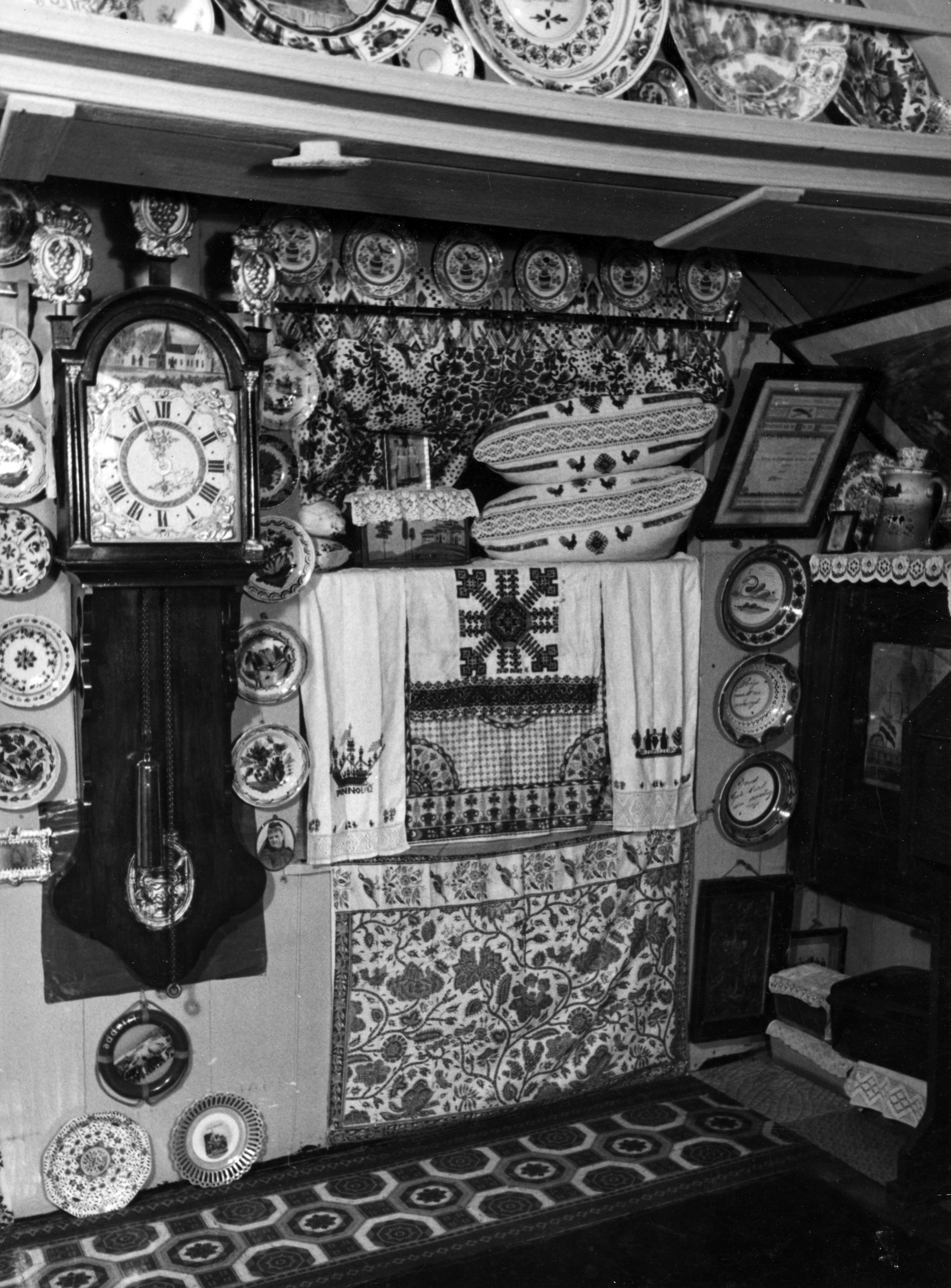 Interieur op het eiland Marken. Hier woonden Pieter van Altena ('Pieterniesie') en Grietje van Altena-Erf. Pieter en Grietje exploiteerden hun interieur al voor 1900 als 'kijkhuisje'. De activiteiten werden na hun beider dood voortgezet door hun dochter Grietje Kaars-van Altena (Grietje van Pieterniesie') en haar man Cornelis Kaars.