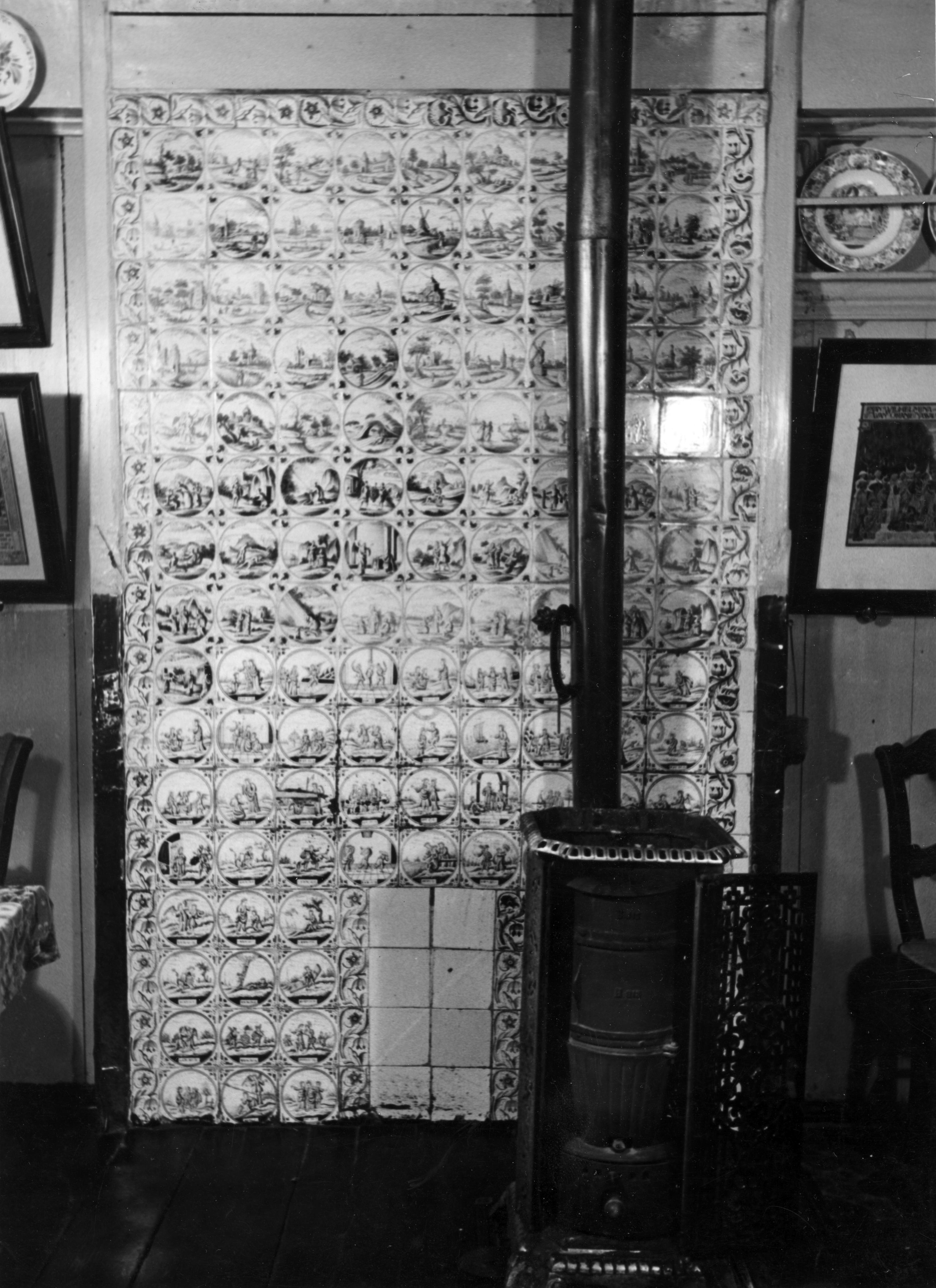 Schouw met tegelwand in een interieur op het eiland Marken.