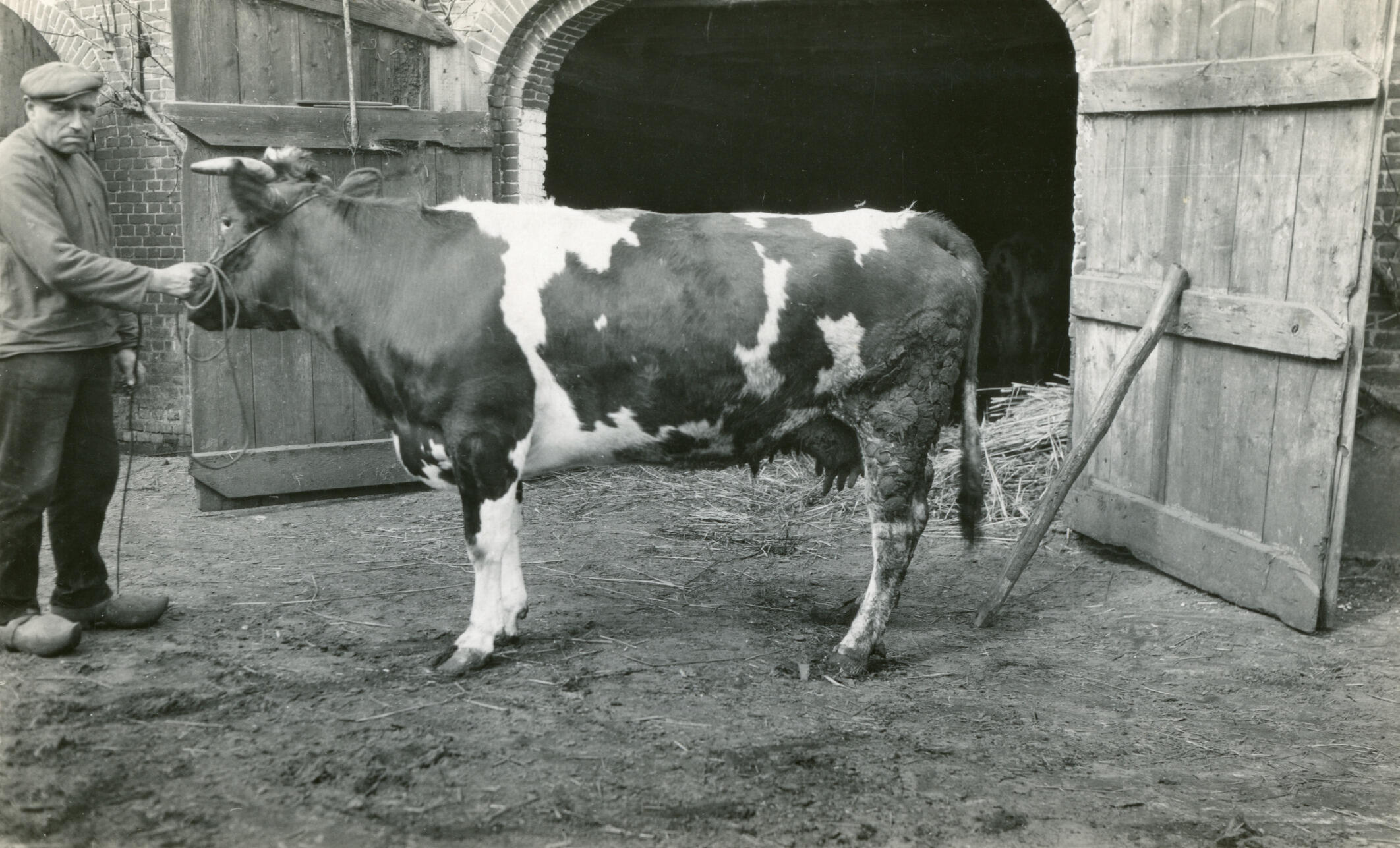 Vuile koe uit een potstal, Middelbeers, 1929 (zwart-wit foto)