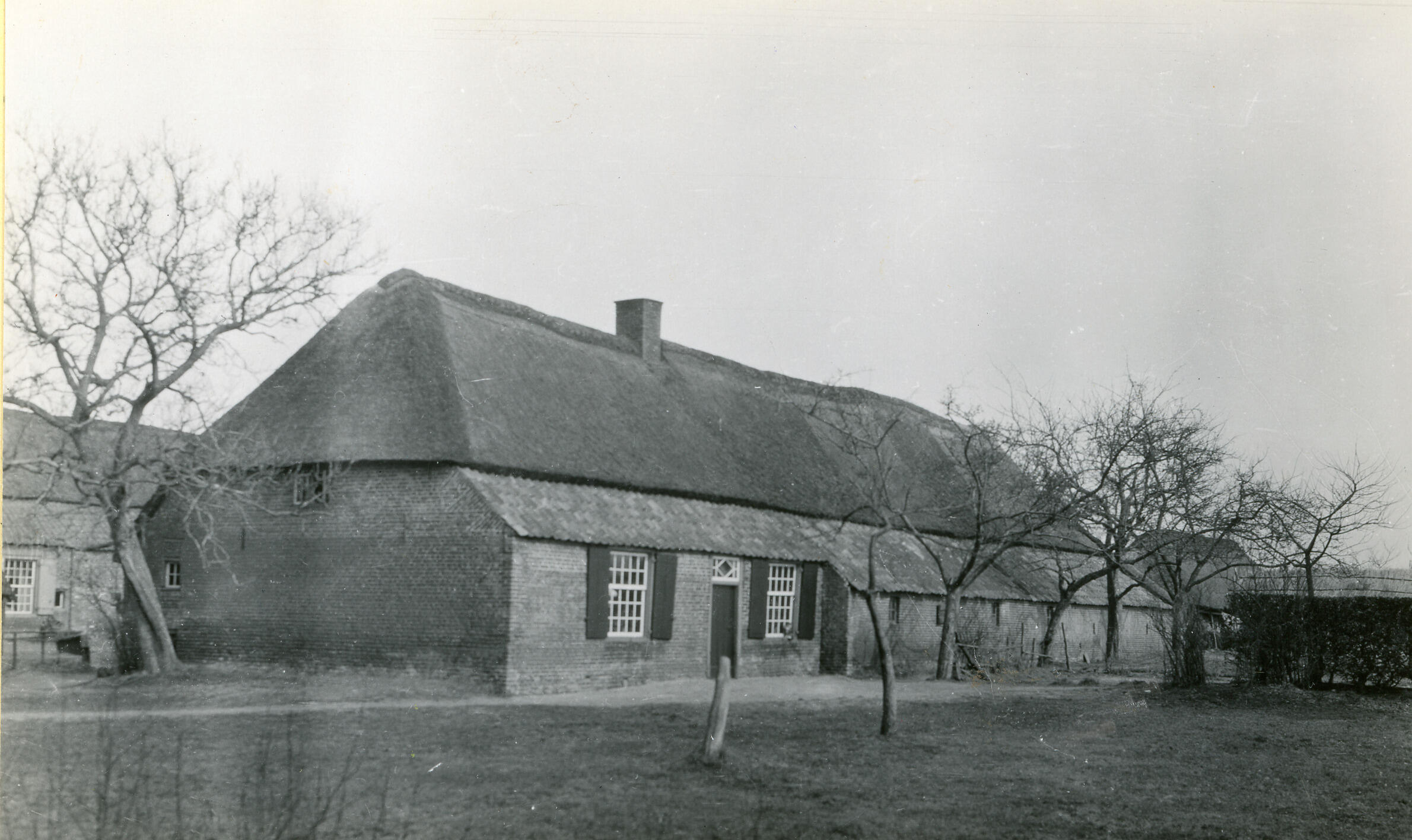 Een boerderij in Westelbeers. Het dak is deels met riet en deels met dakpannen gedekt.