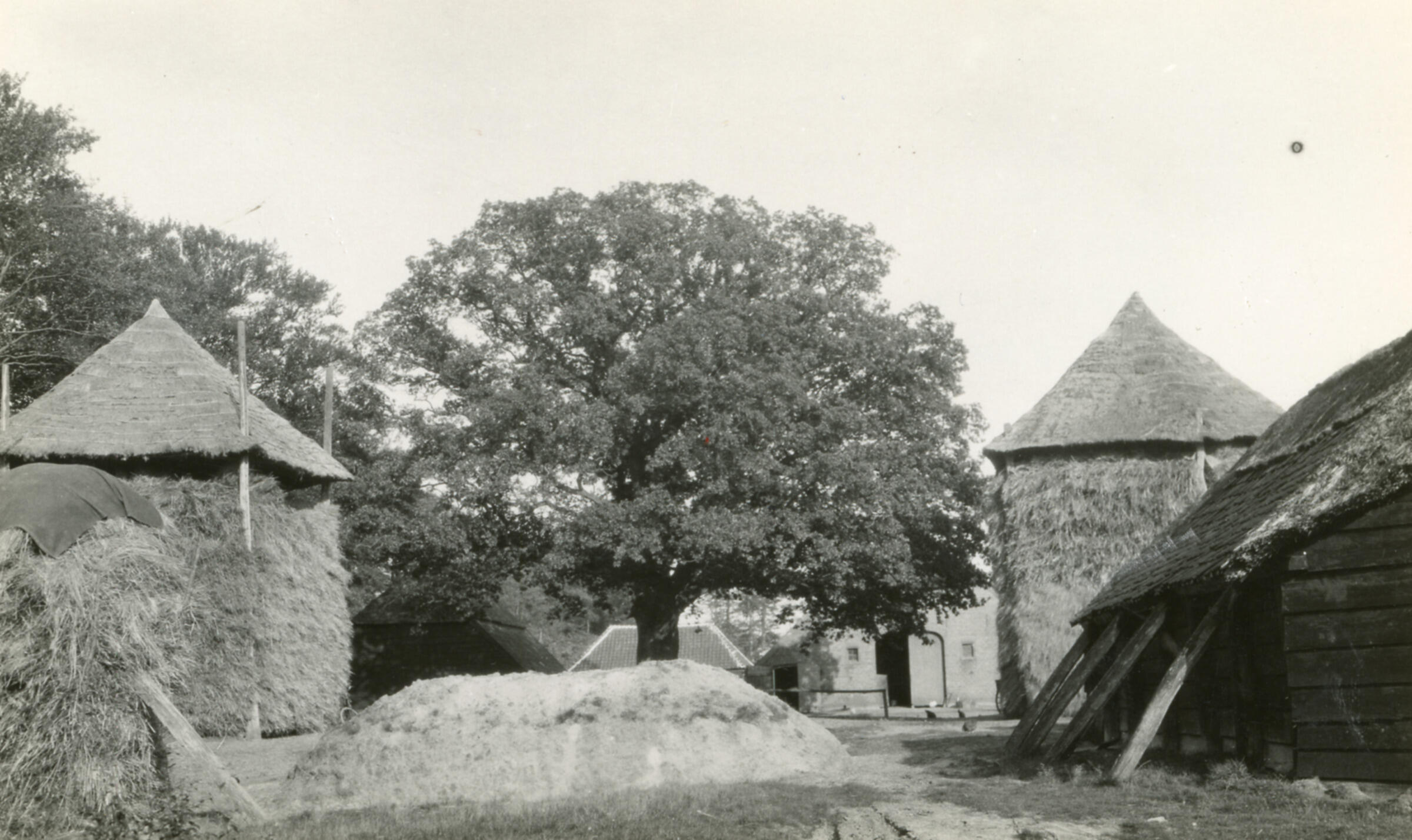 Hooibergen achter een boerderij in de Doesburgerbuurt, een buurtschap bij Ede.