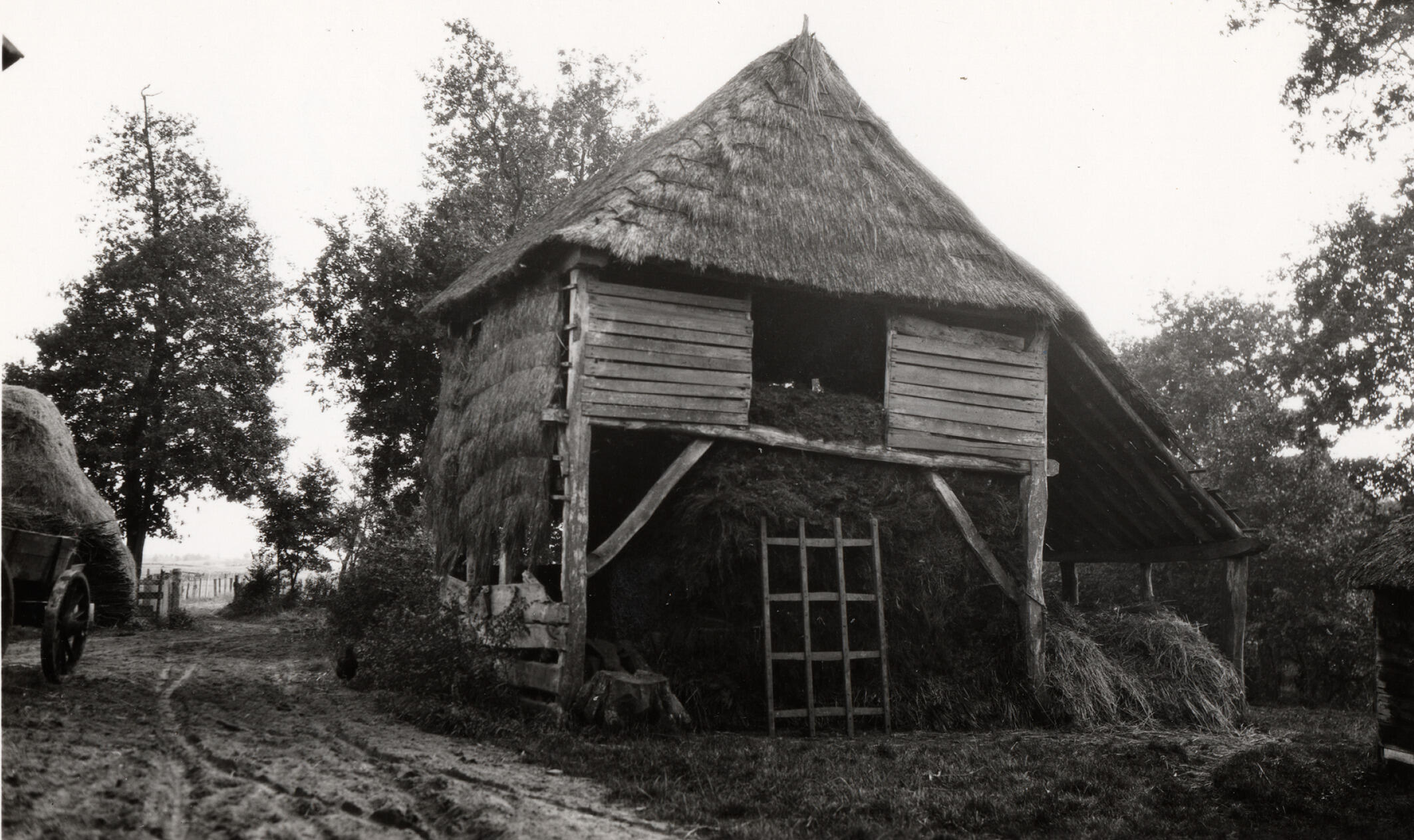 Hooischuur, Staphorst, 1935 (zwart-wit foto)
