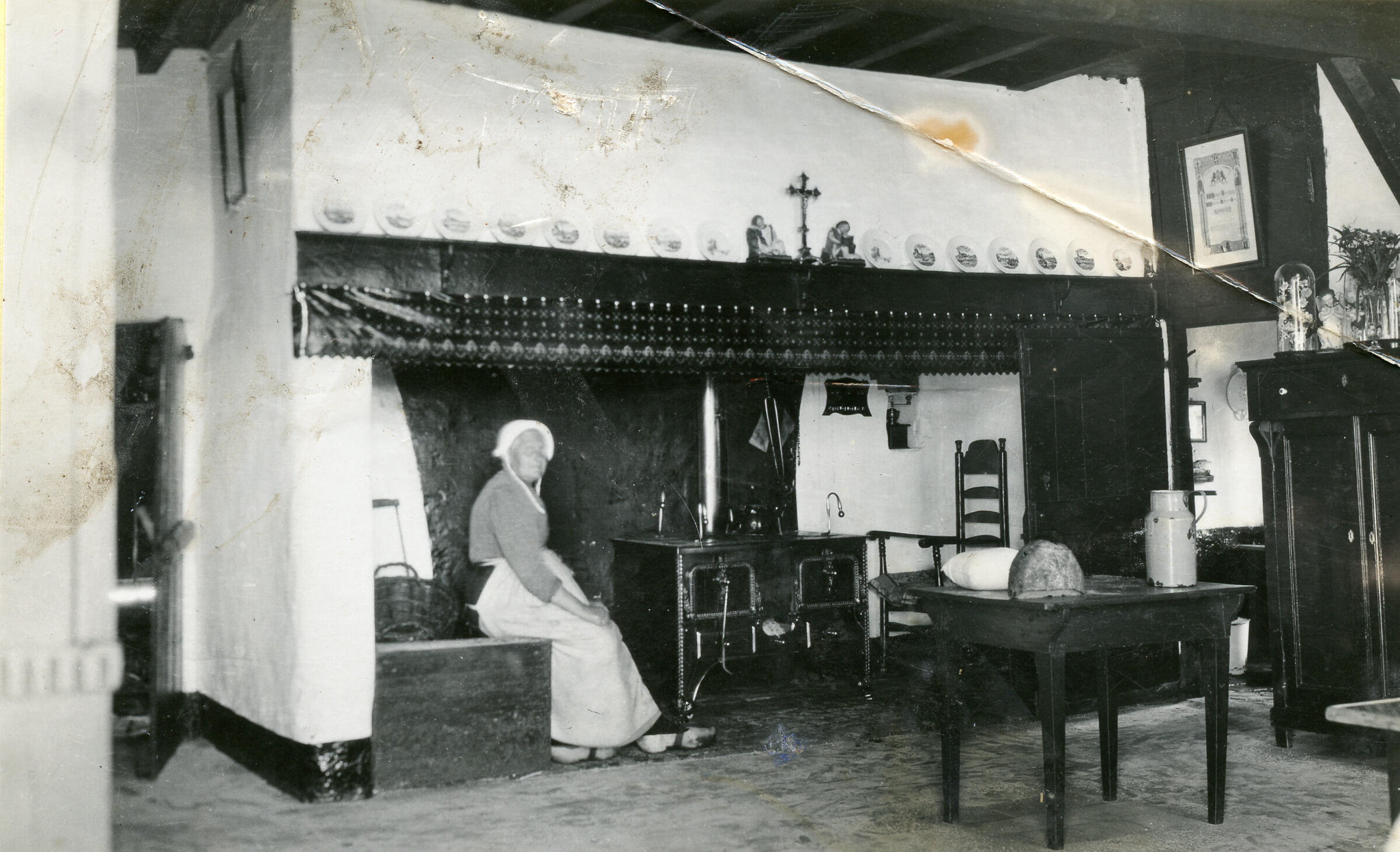 Interieur van een boerenkeuken, Roond, 1936 (zwart-wit foto)