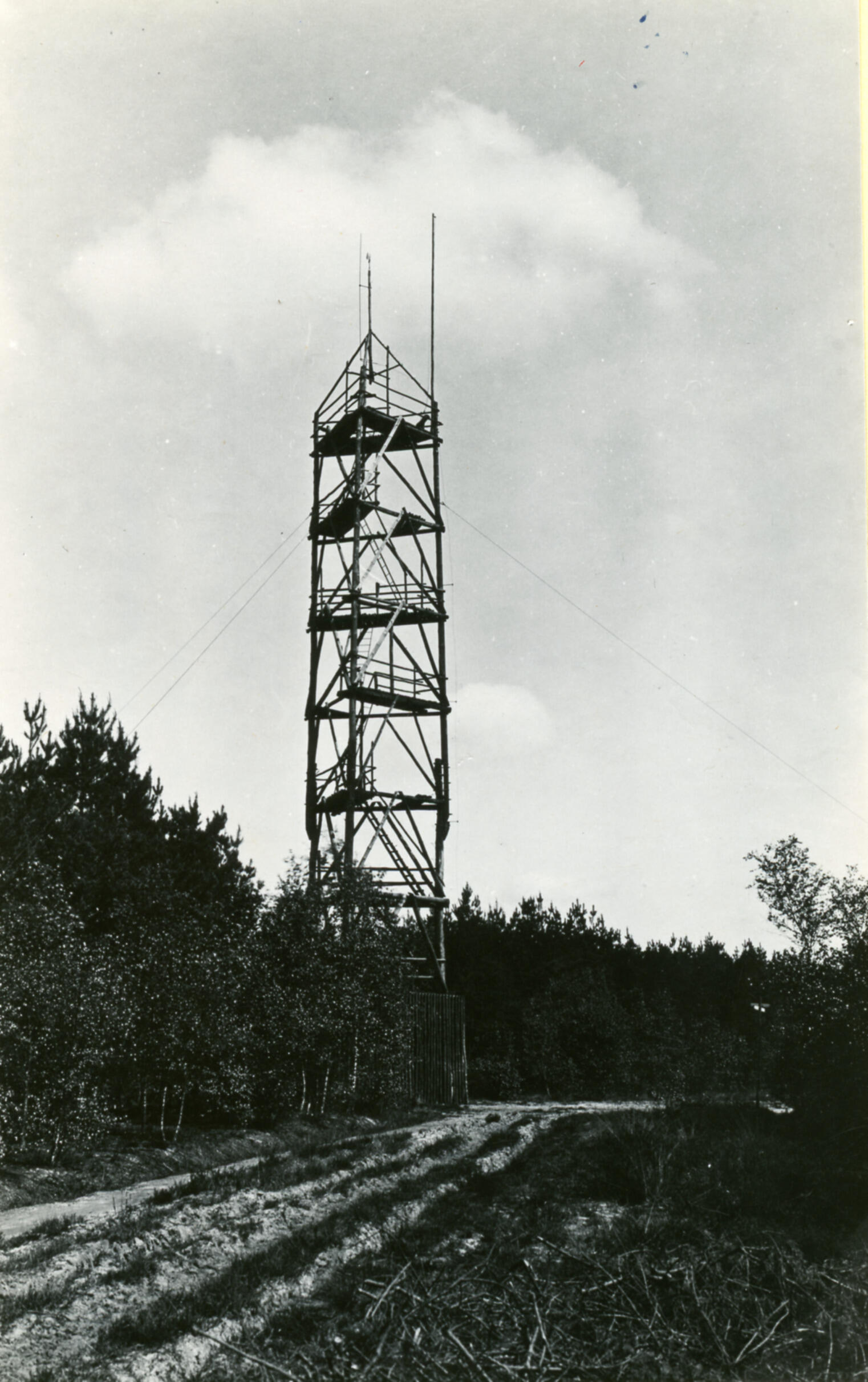 Brandtoren van Staatsbosbeheer bij Breda, 1936 (zwart-wit foto)