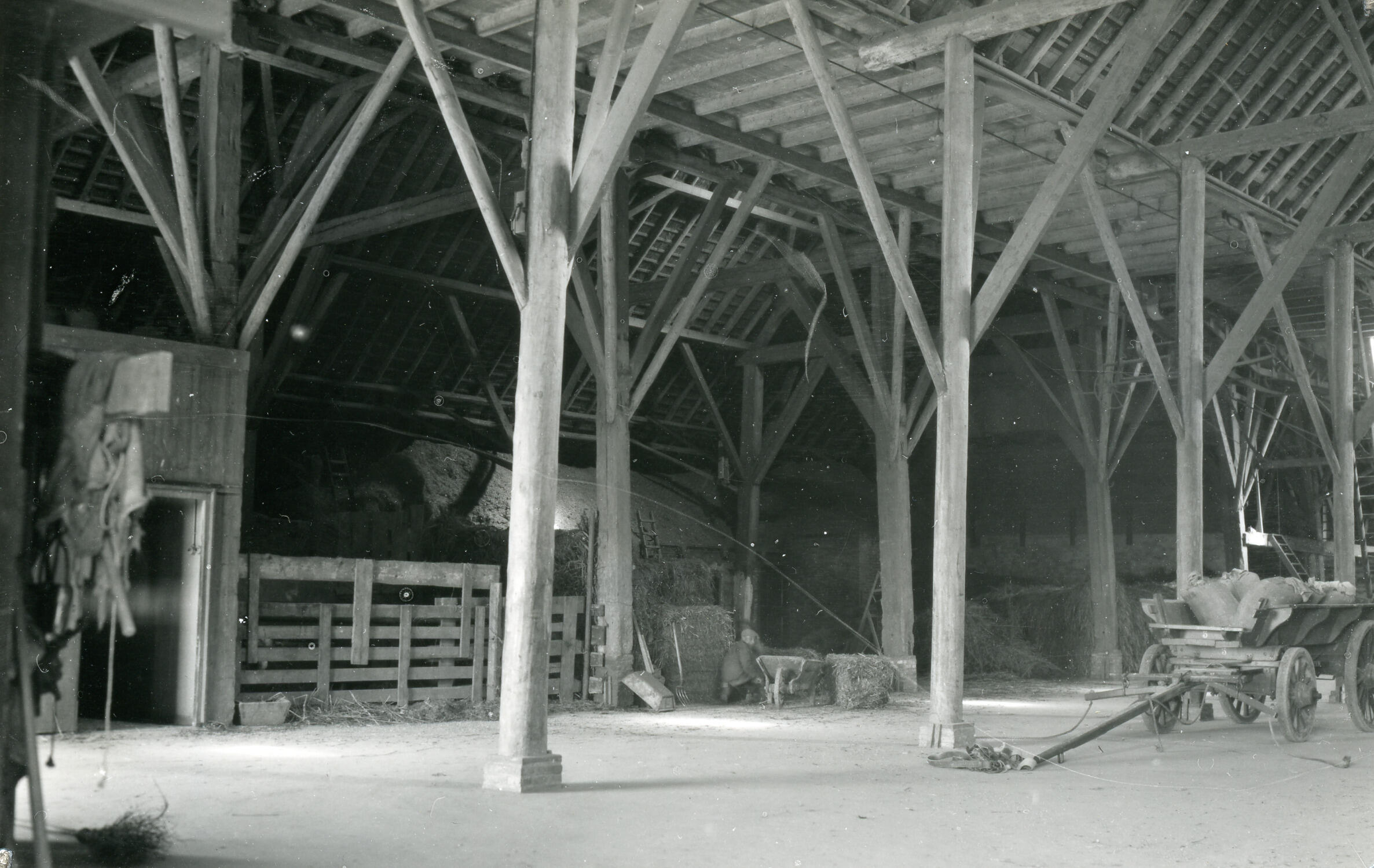 Bedrijfsgedeelte van een boerderij, Zandeweer, 1937 (zwart-wit foto)