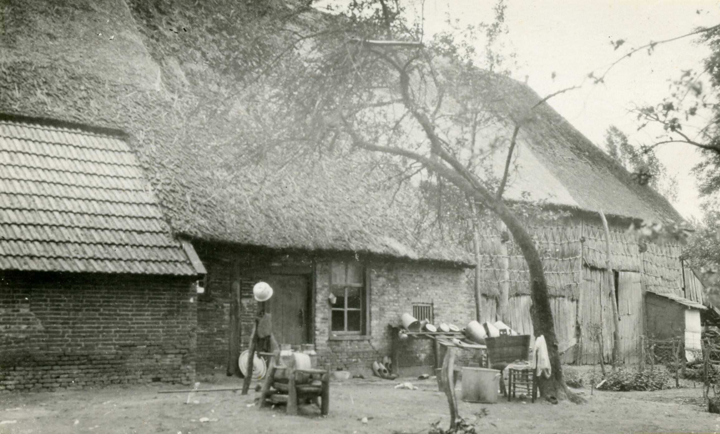 Een boerderij in Schoonebeek. De wanden van het bedrijfsgedeelte zijn deels van strovlechtwerk.