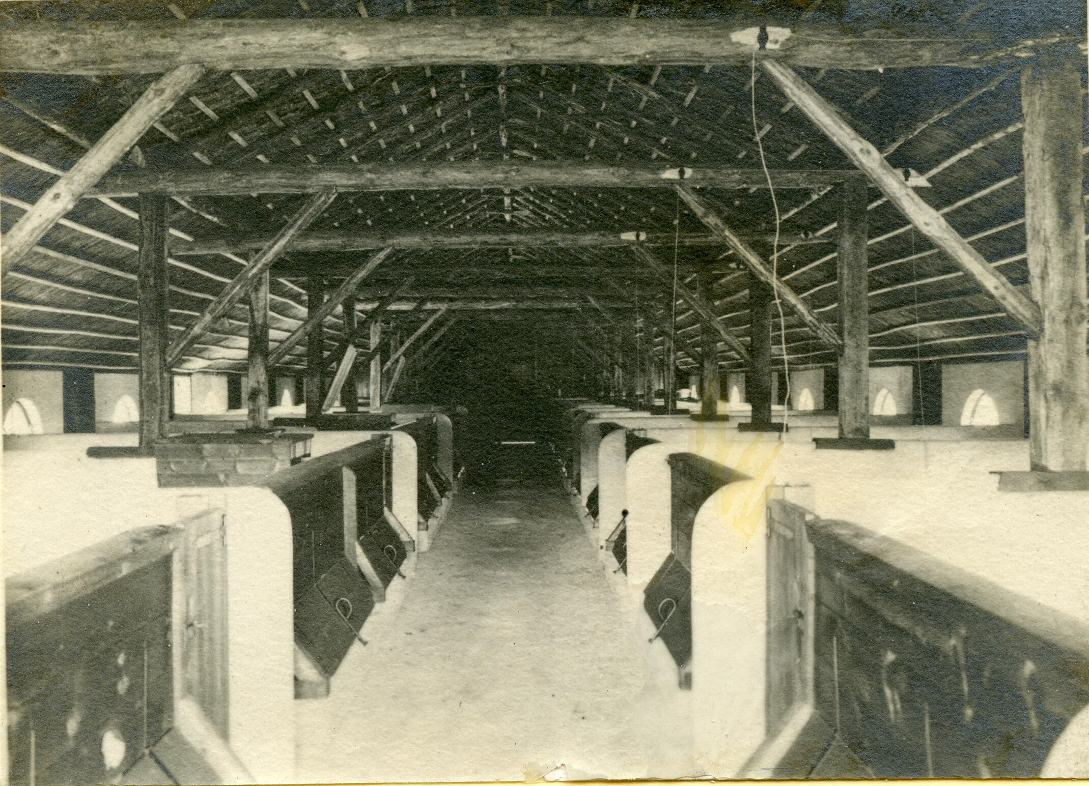 Interieur van een varkensstal, 1938 (zwart-wit foto)
