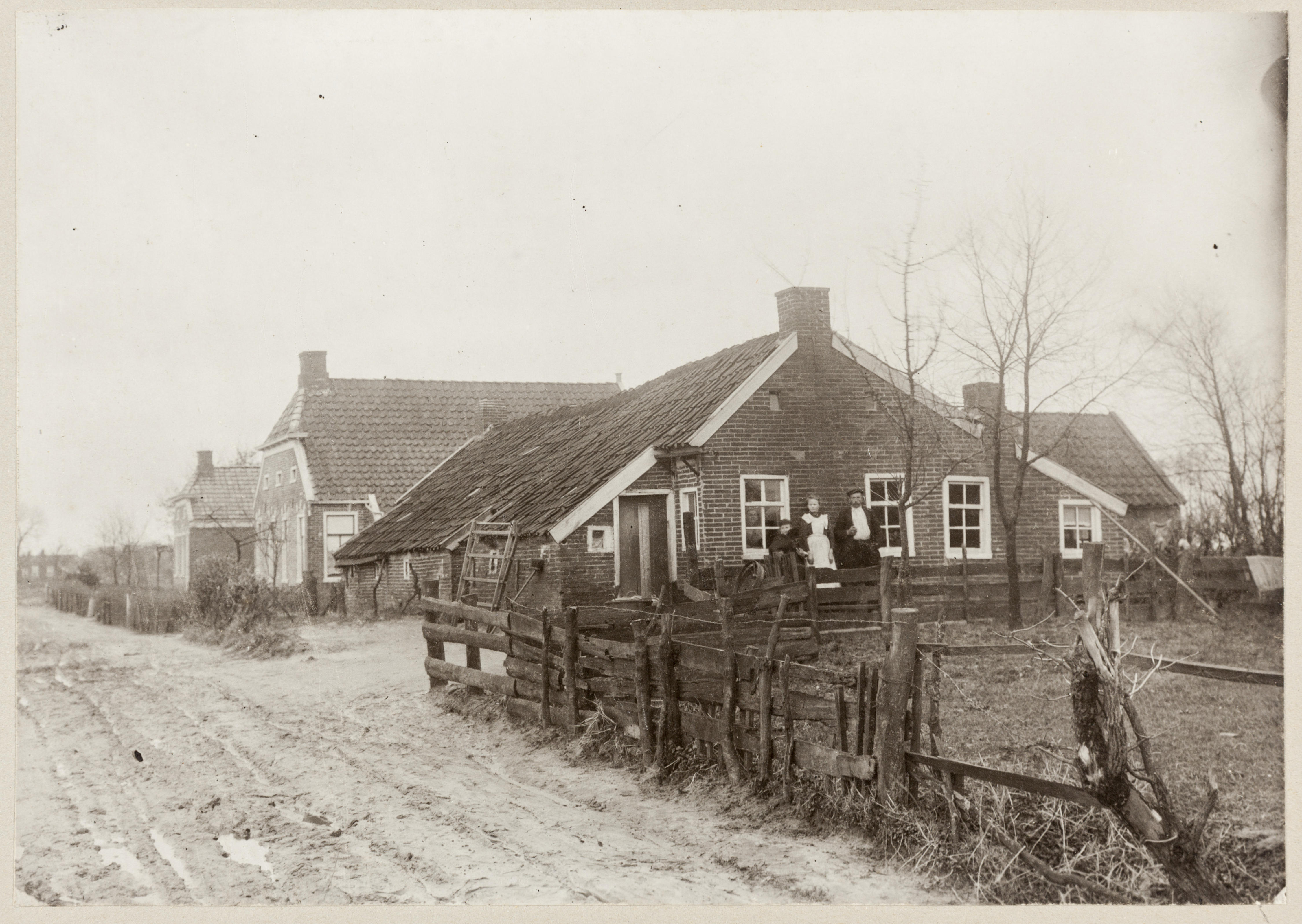 Boerderij in Bellingwolde, Groningen, 1914 (zwart-wit foto)
