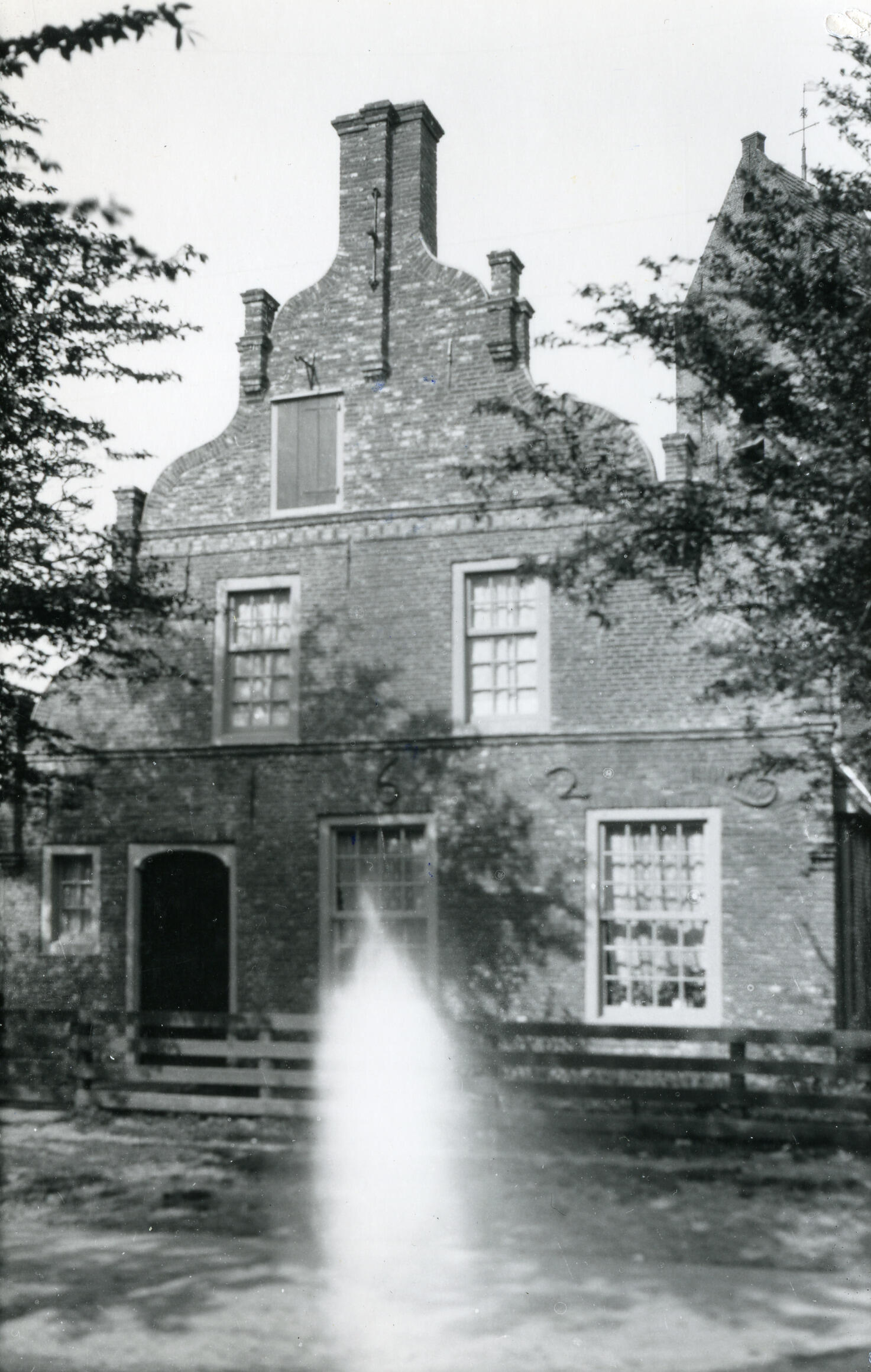 Voorgevel van een boerderij in Nes aan de Amstel. Muurankers in de voorgevel vormen het jaartal 1623.