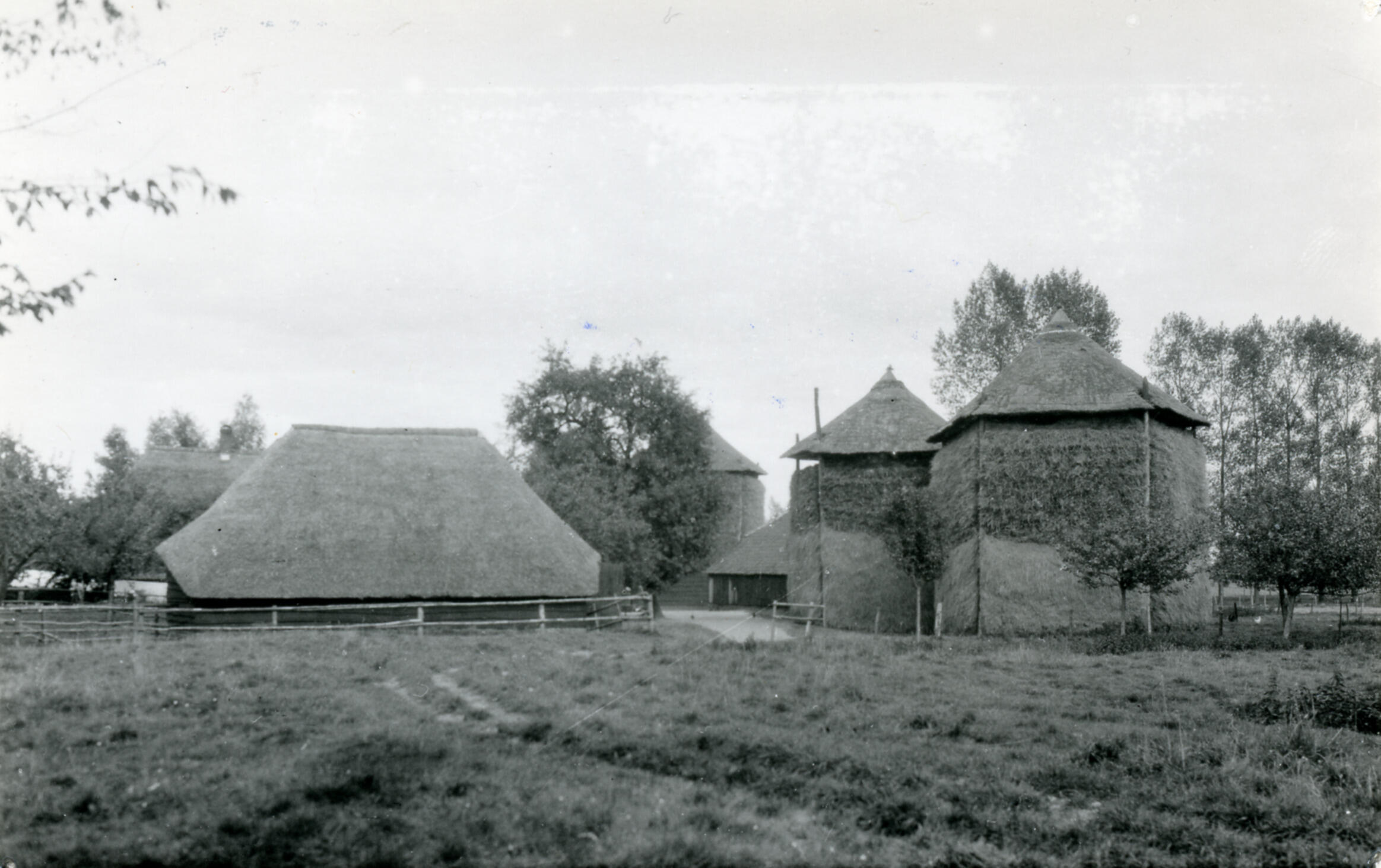 Schuur en hooibergen, Achterberg 1939 (zwart-wit foto)