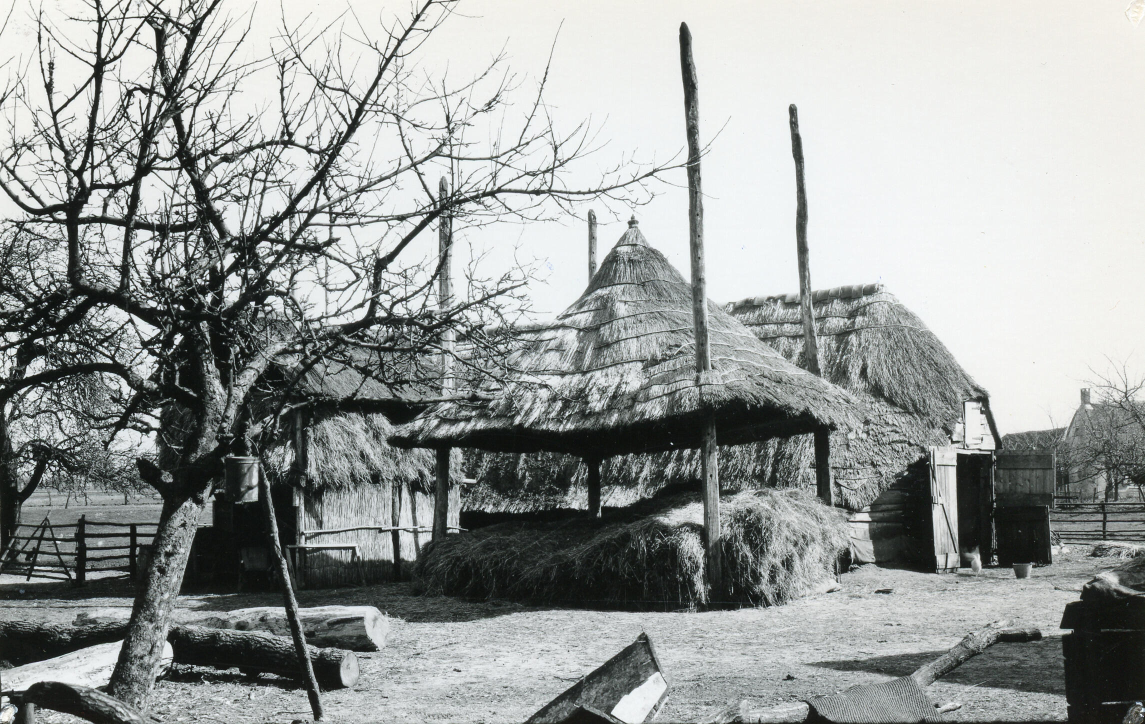 Hooiberg en schaapskooi, Achterberg, 1939 (zwart-wit foto)