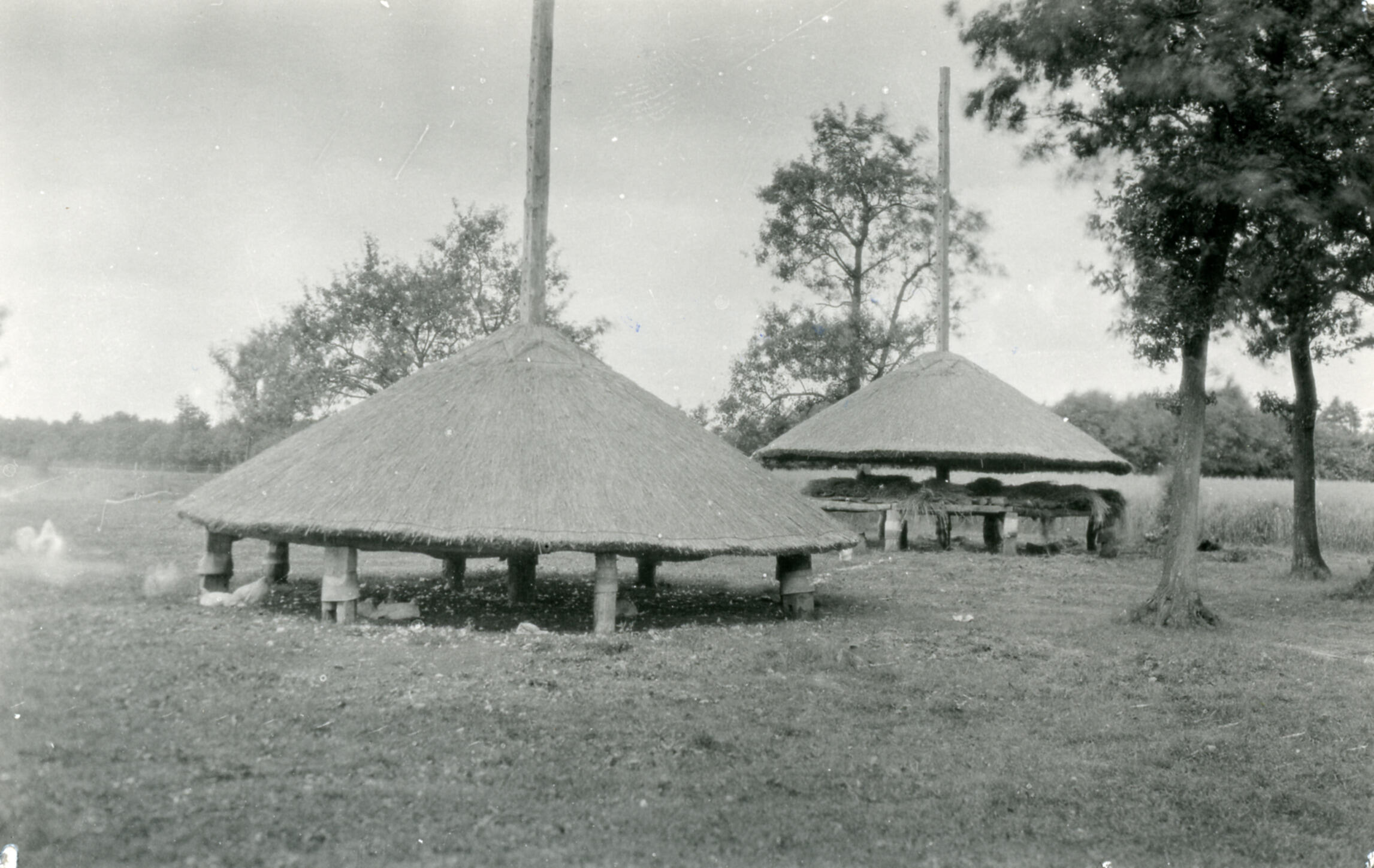 Twee hooibergen, gemeente Zutphen, 1935 (zwart-wit foto)