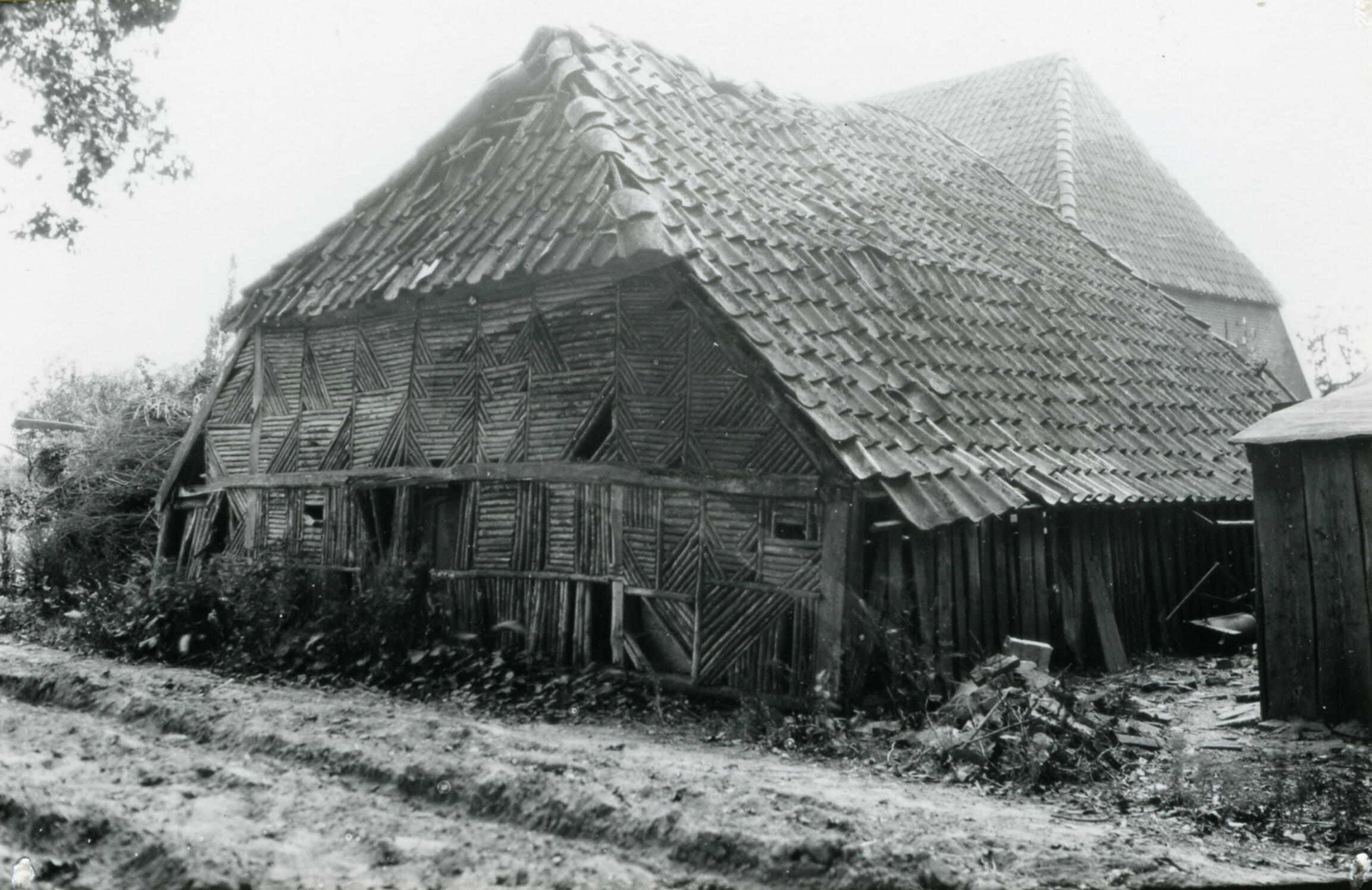 Schuur bij boerderij 'Erve klein Beurink', Zwiep, 1937 (zwart-wit negatief)