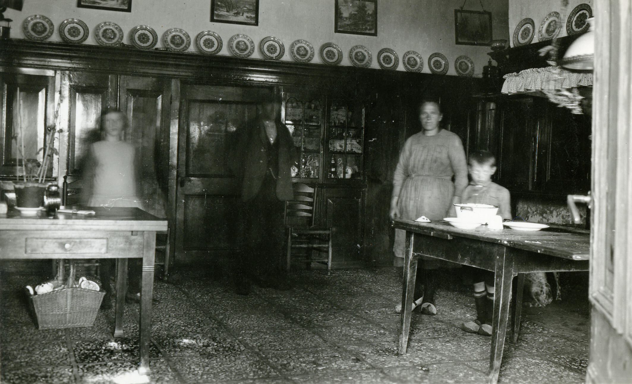 Interieur van een boerderij, Meddo, 1930 (zwart-wit foto)