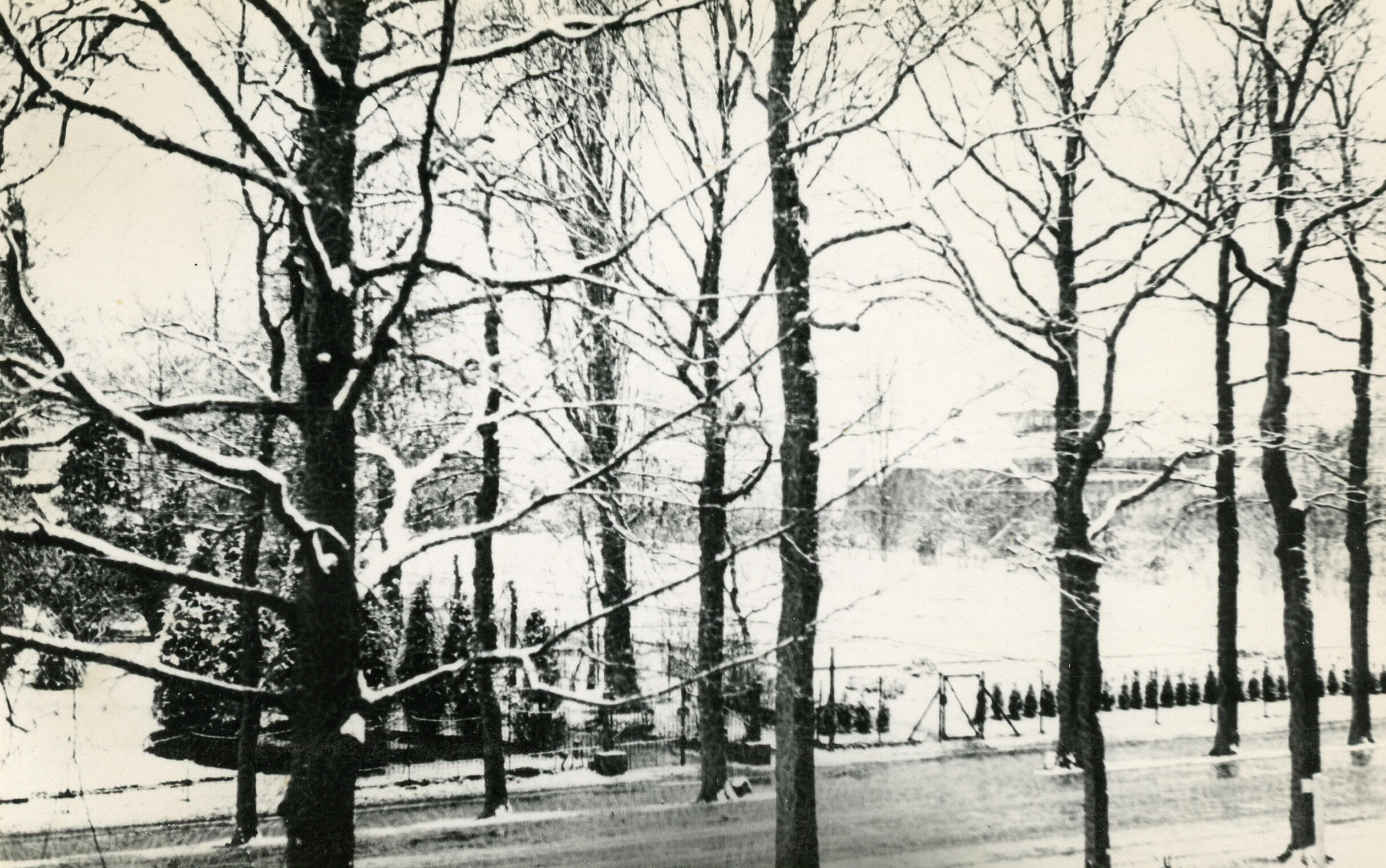 Besneeuwde tuin van de familie Van Houten in Wageningen.