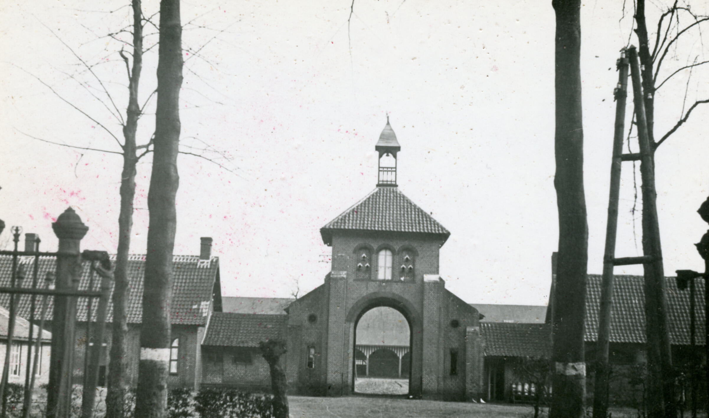 Poortgebouw van een boerderij, België, 1935 (zwart-wit foto)