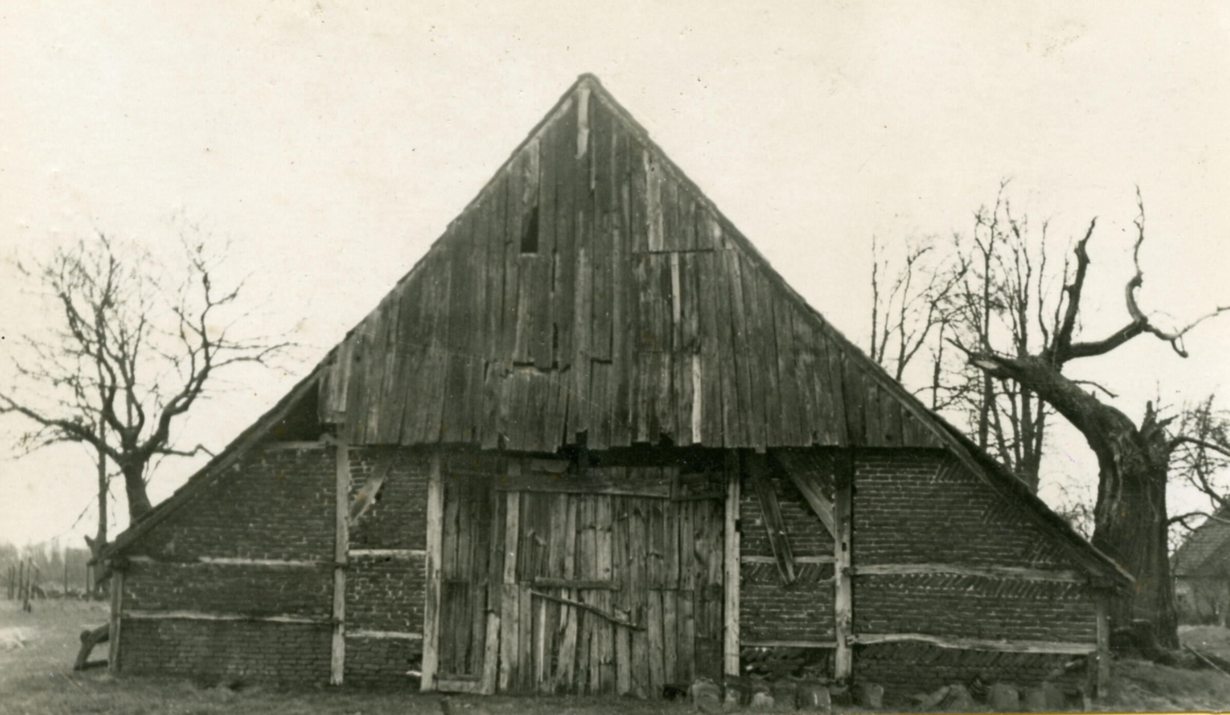Schuur, het Woold, 1935 (zwart-wit foto)
