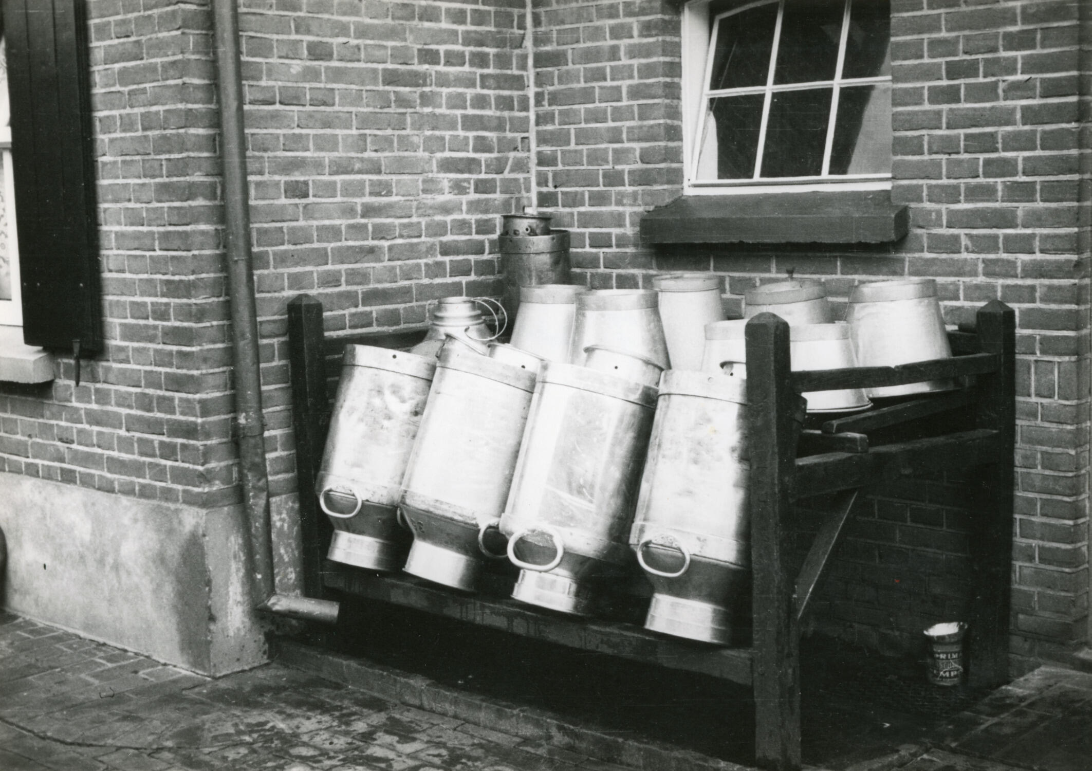 Melkbussenrek, Eefde, 1935 (zwart-wit foto)