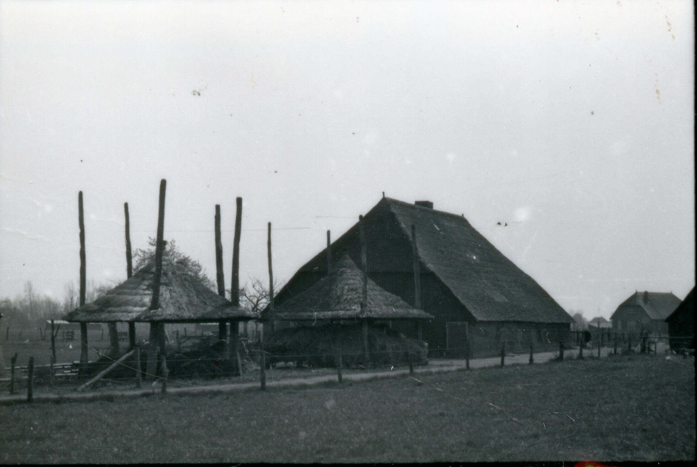 Boerderij met hooibergen, Zetten, 1935 (zwart-wit negatief)