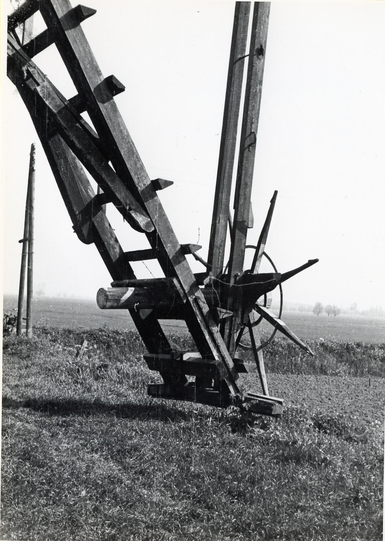 Kruiwerk van een wipwatermolen, Meerkerk, 1935 (zwart-wit foto)