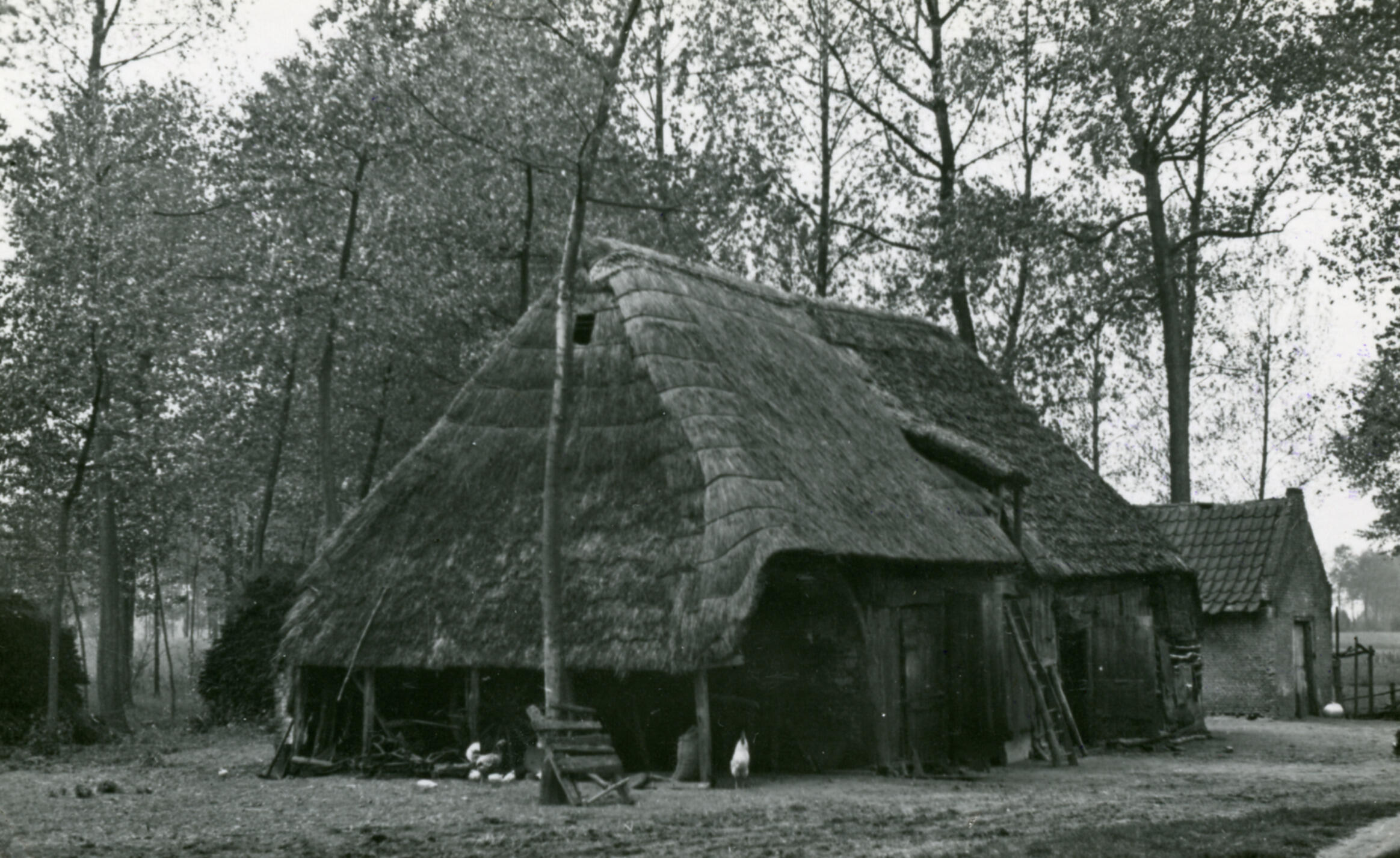 Schuur, Vernhout, 1935 (zwart-wit foto)