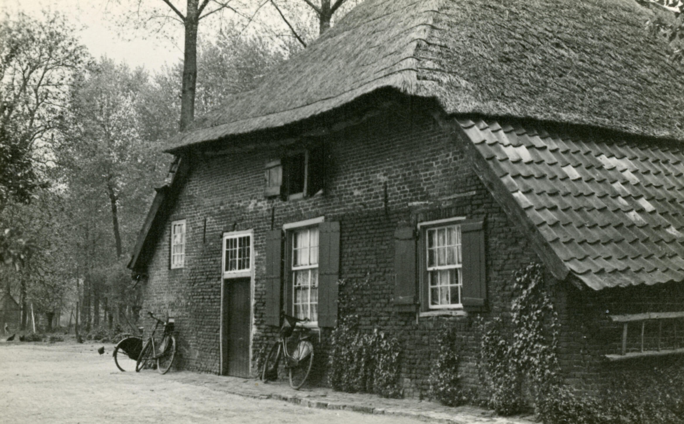Voorzijde van een boerderij in Vernhout, een buurtschap bij Sint-Oedenrode. Tegen de voorgevel staan fietsen.
