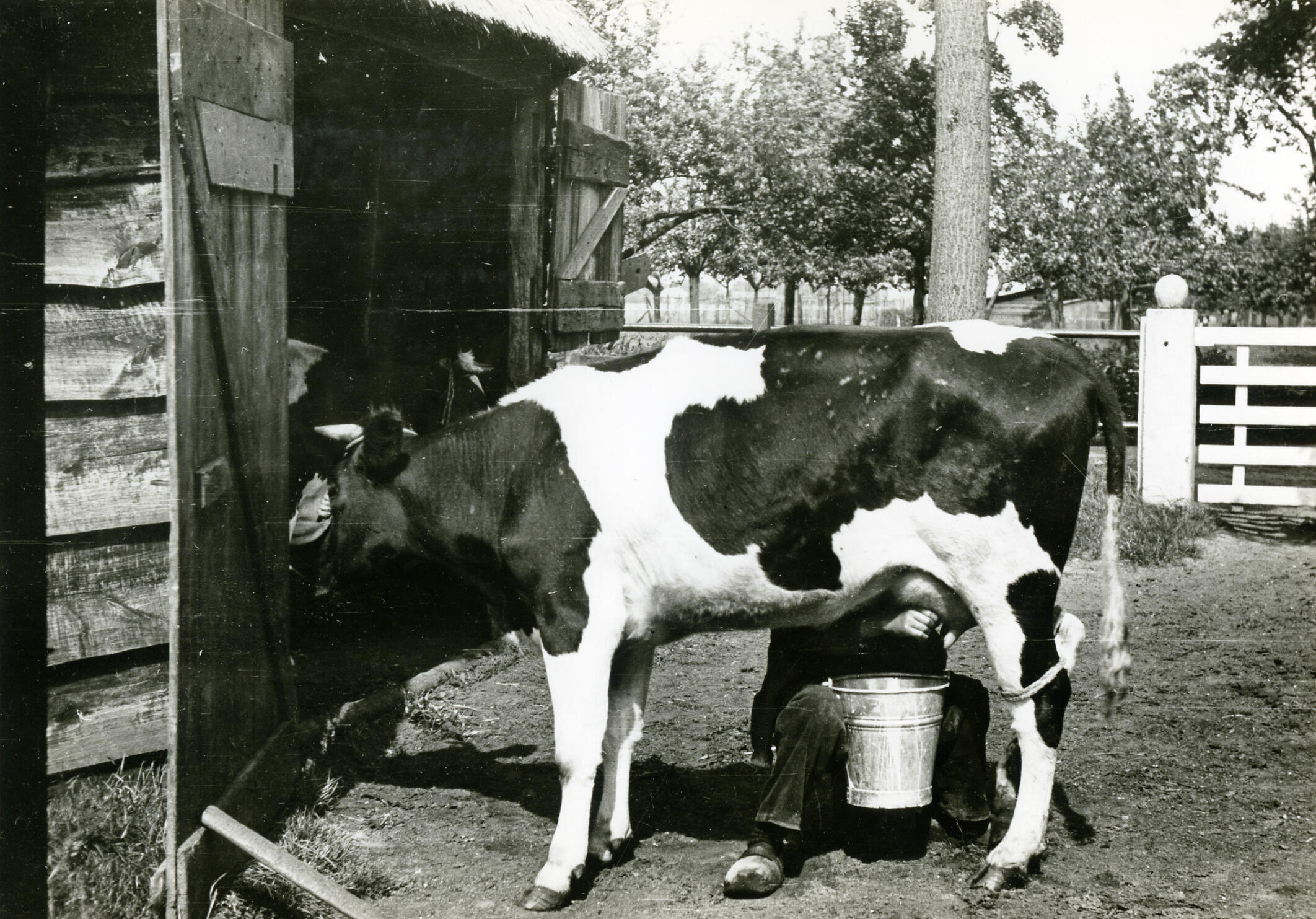 Melken, De Kraats, 1935 (zwart-wit foto)