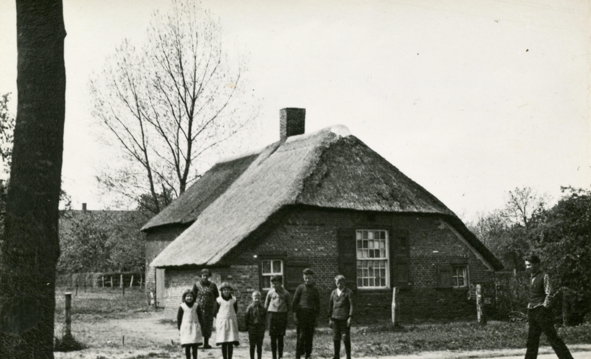Kinderen voor een boerderij, Berghem, 1935 (zwart-wit negatief)