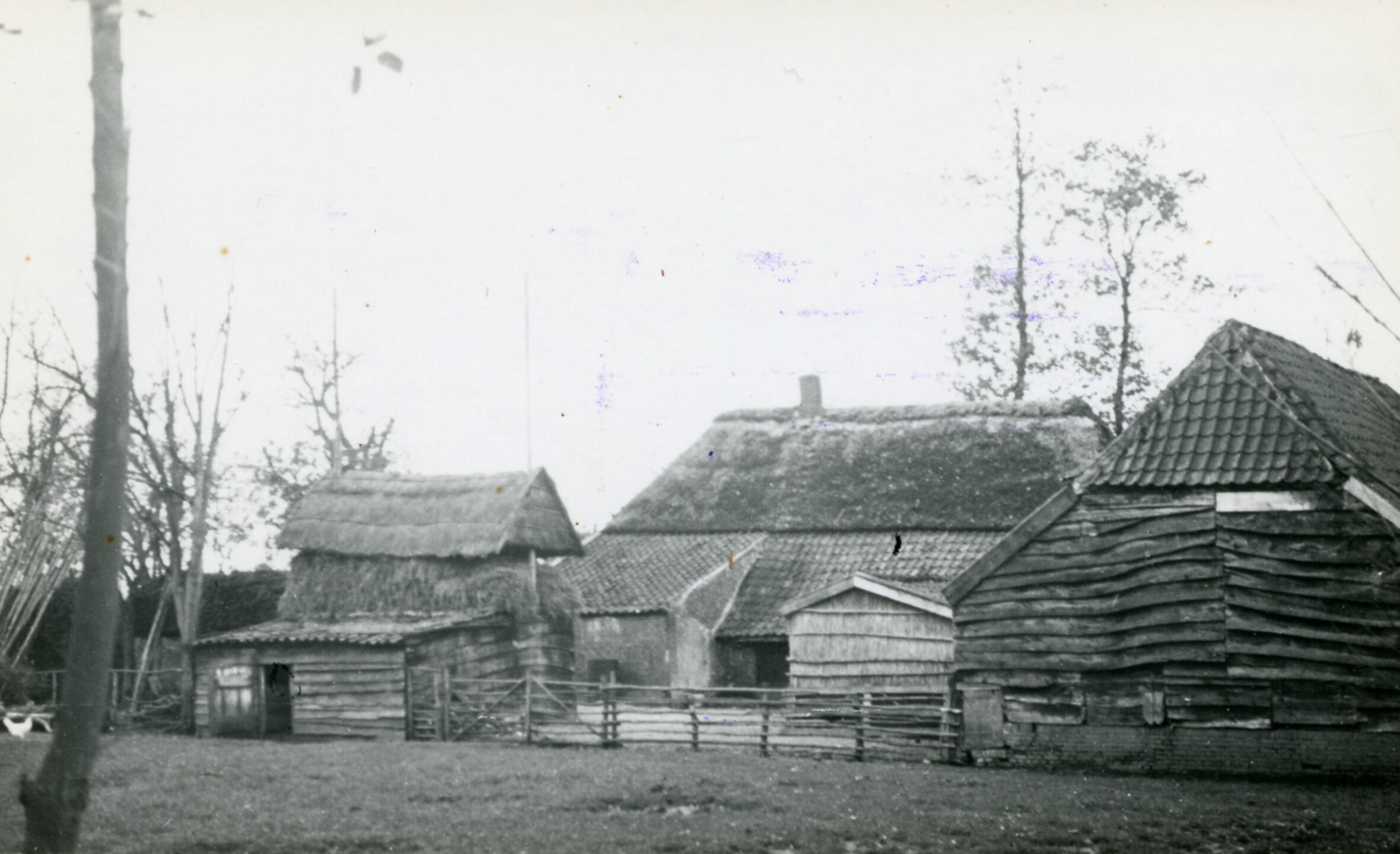 Een boerderij met bijgebouwen en een hooiberg aan de Dijkgraaf in De Kraats, een buurtschap bij Bennekom.