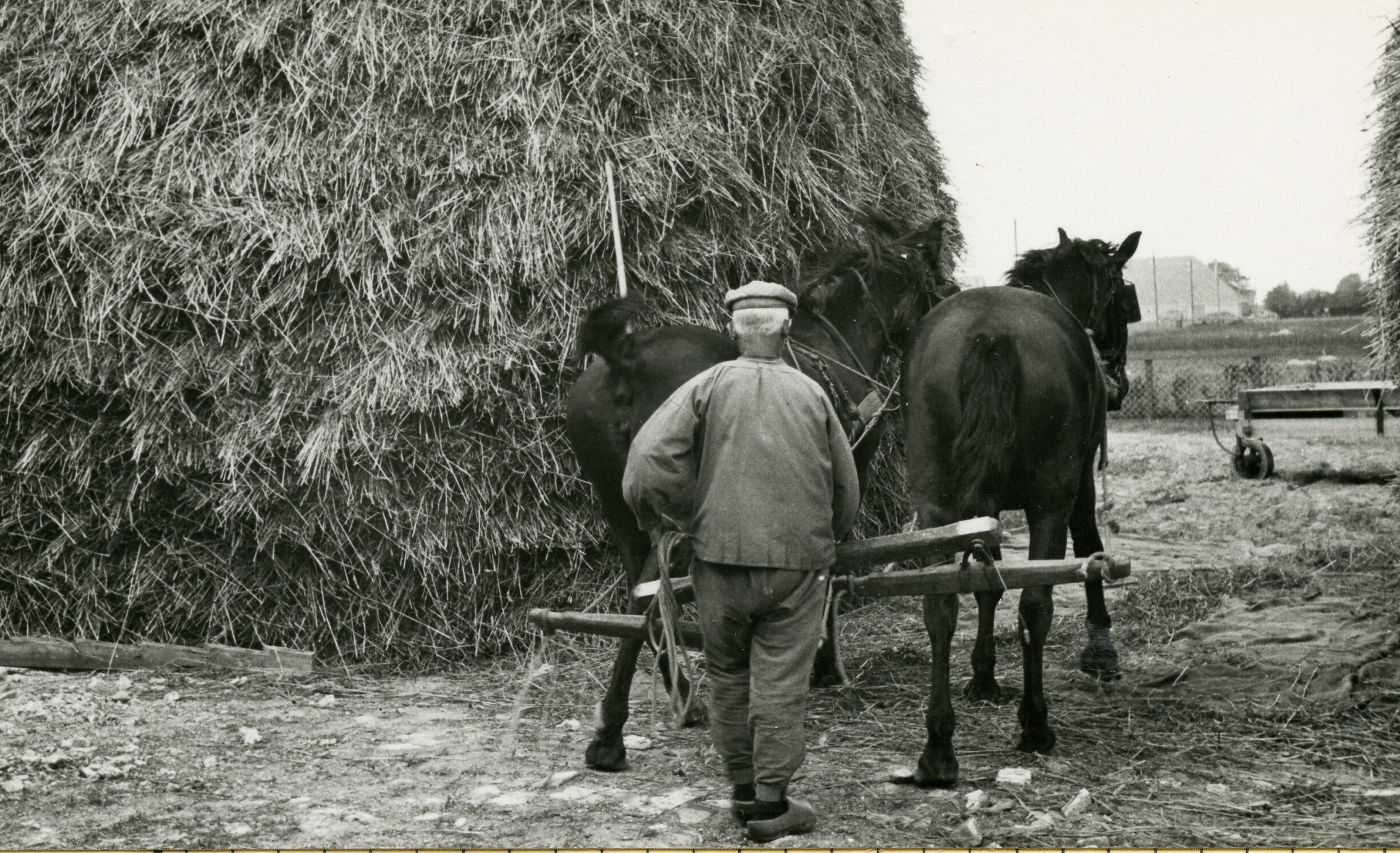 Man met paarden, De Koog, 1935 (zwart-wit foto)