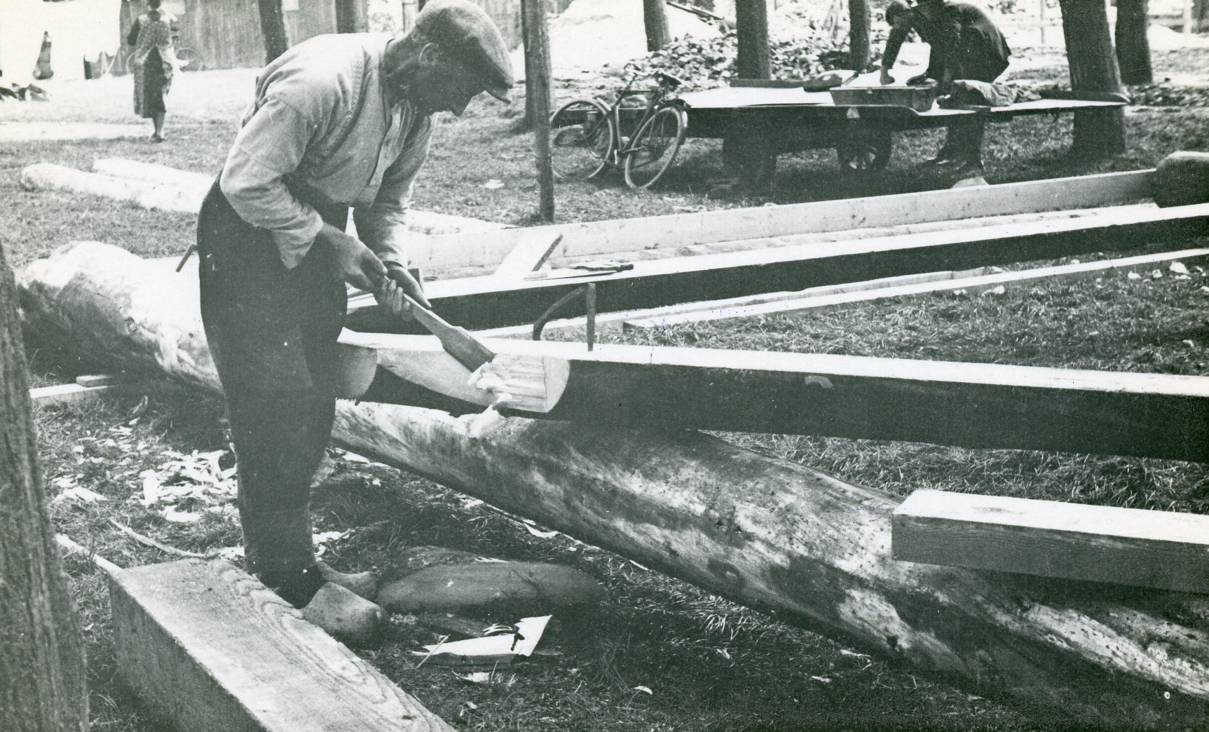 Gebinten maken voor een boerderij, Heerhugowaard, 1935 (zwart-wit foto)