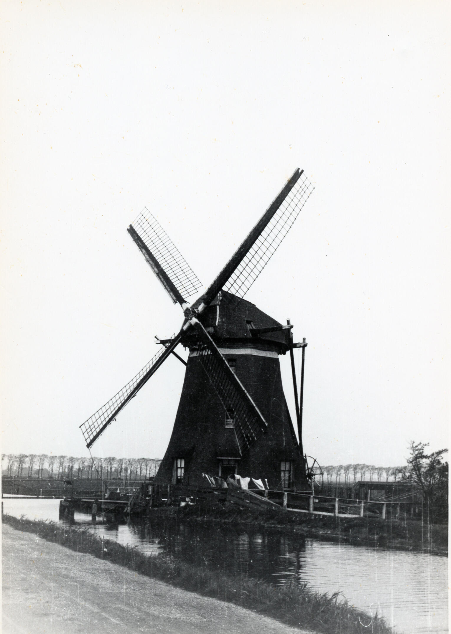 Watermolen-bovenkruier, polder Westbroek, Zoeterwoude, 1935 (zwart-wit foto)
