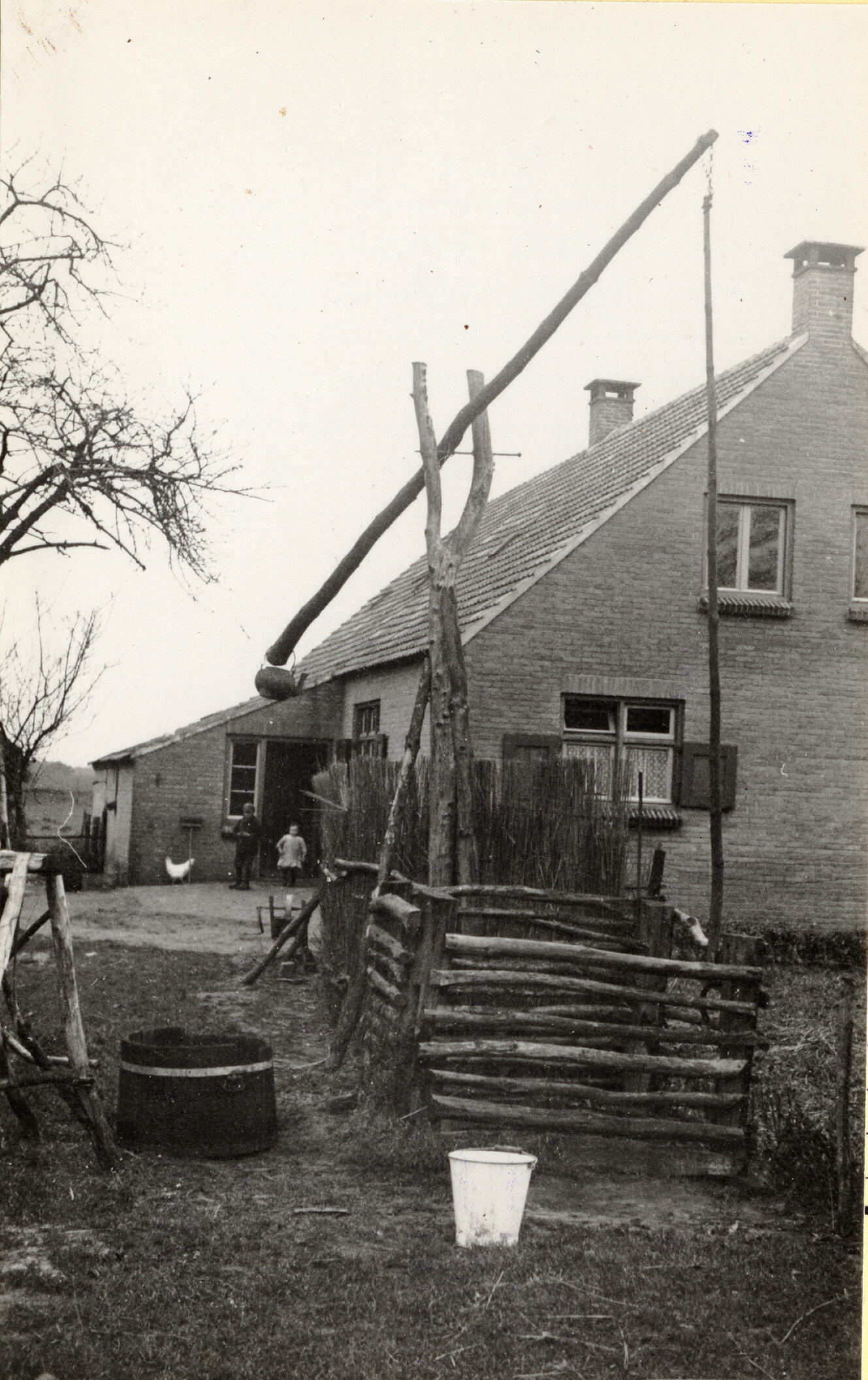 Waterput met puthaal voor een huis in Brouwhuis.
