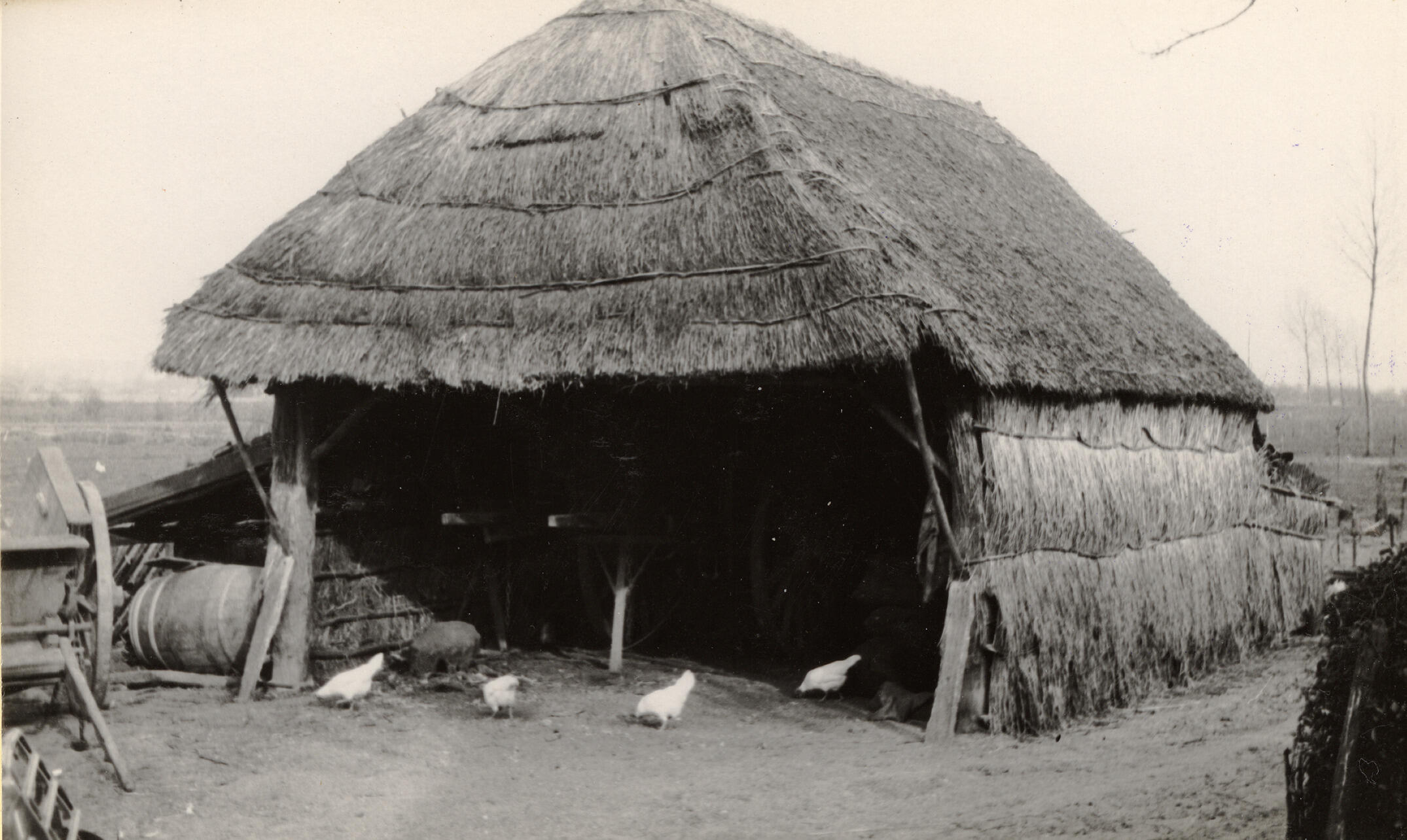 Open bijschuur met een dak en wanden van stro in Beers.