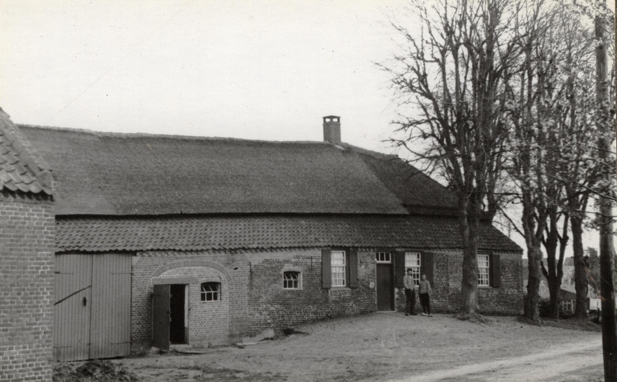 Het woongedeelte van een boerderij in Asten, met daarnaast een man en een jongen.