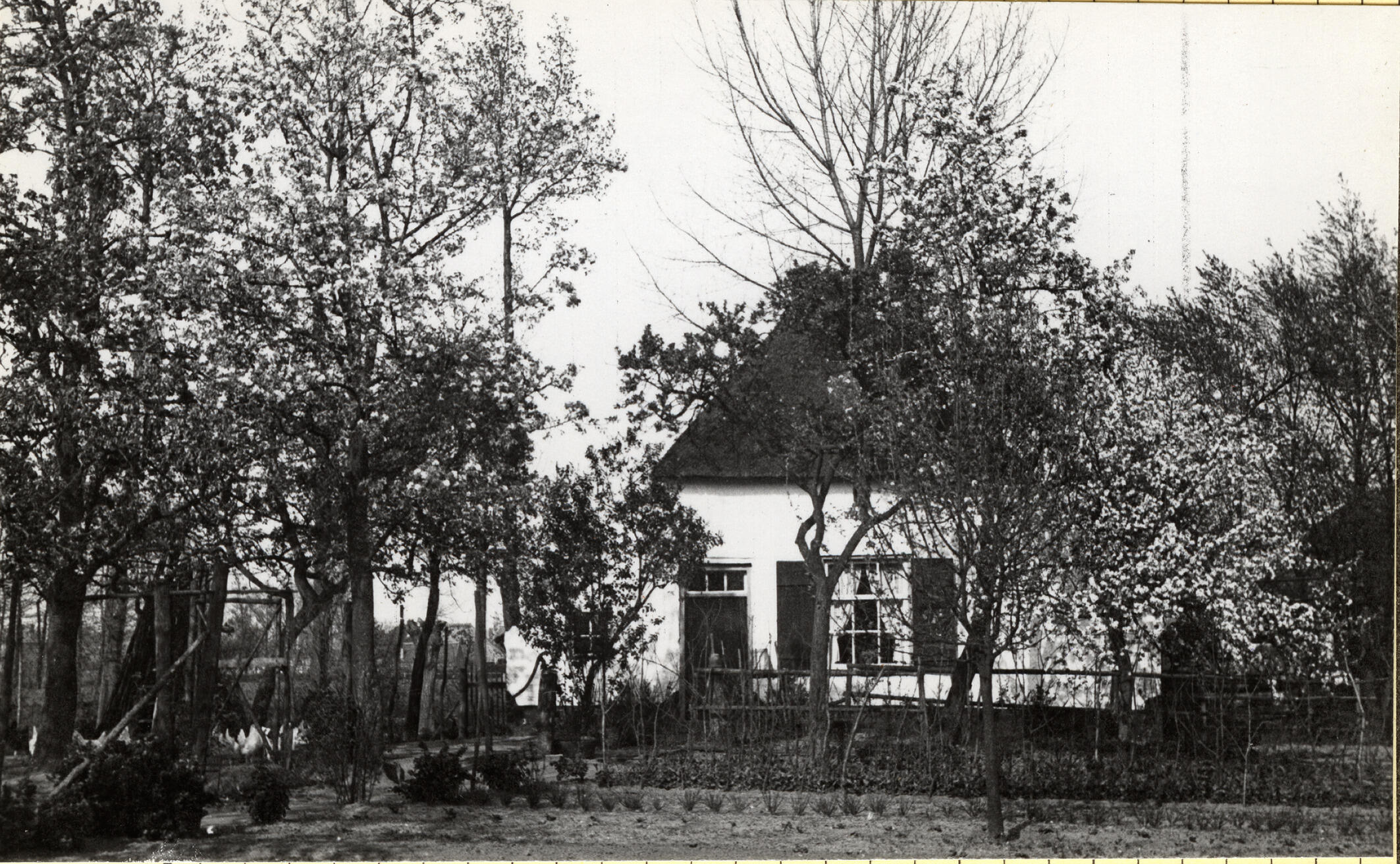 Witte voorgevel van een kleine boerderij in Bennekom.