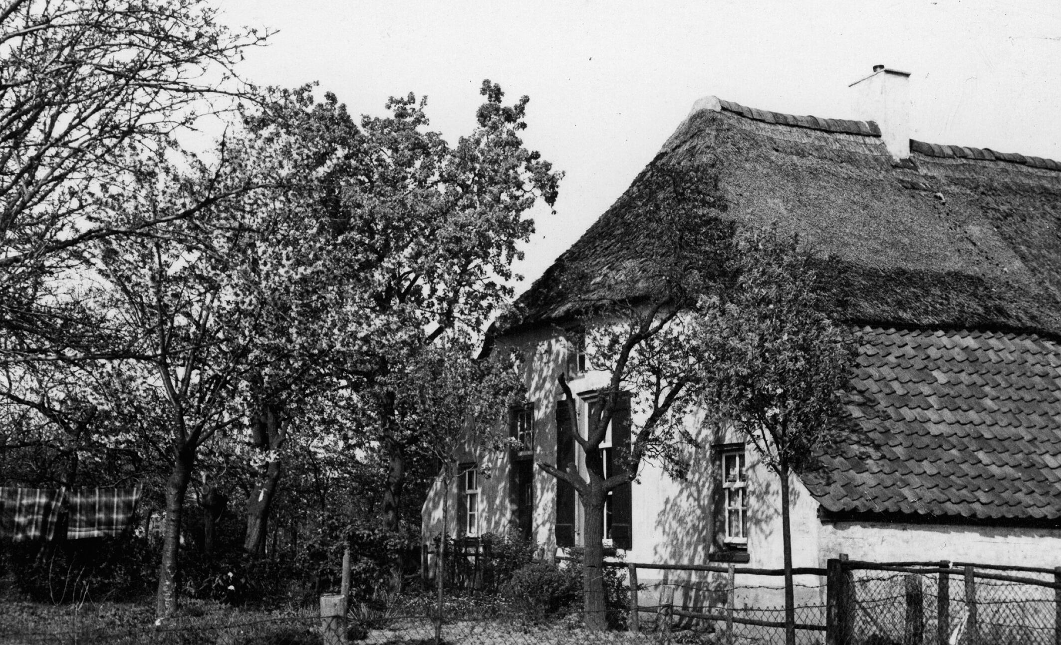 Boerderij en voortuin, Wageningen, 1936 (zwart-wit negatief)