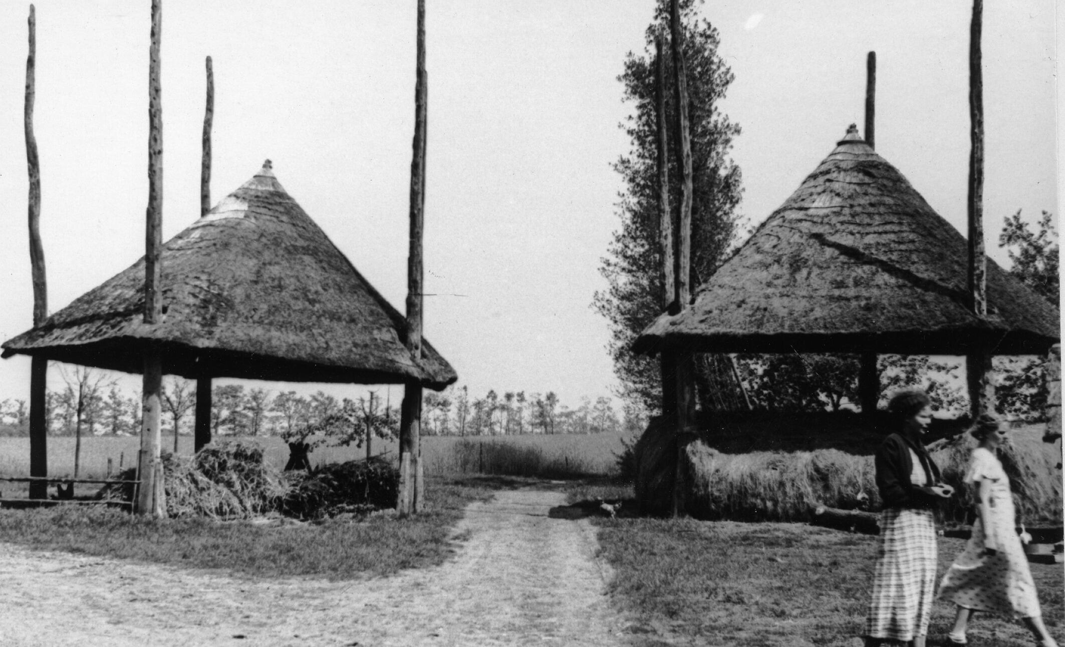 Twee hooibergen, De Kraats, 1936 (zwart-wit foto)
