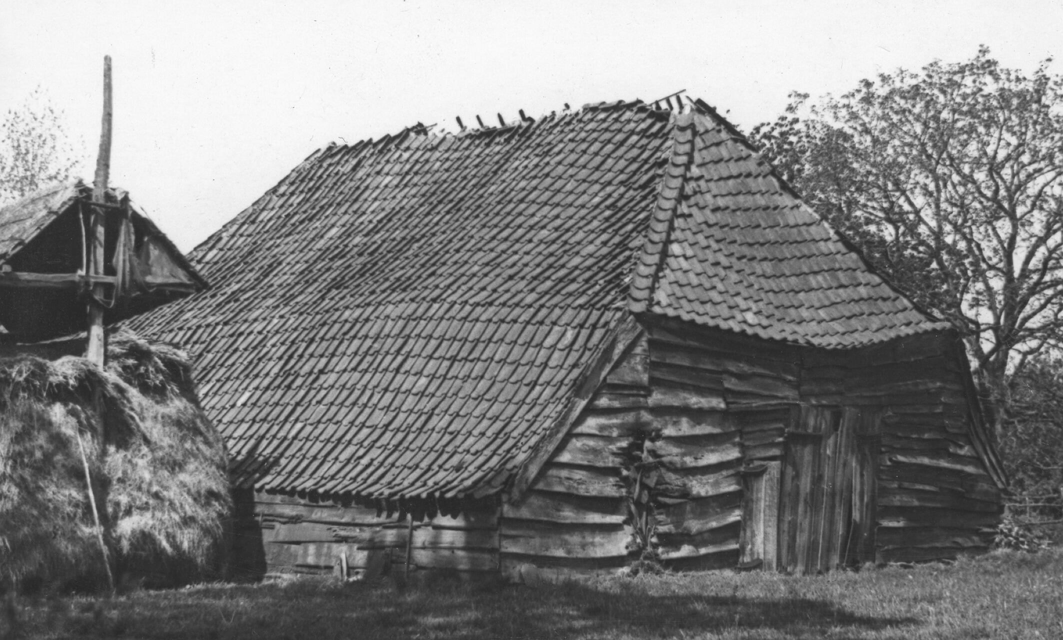 Houten schuur, De Kraats, 1936 (zwart-wit foto)