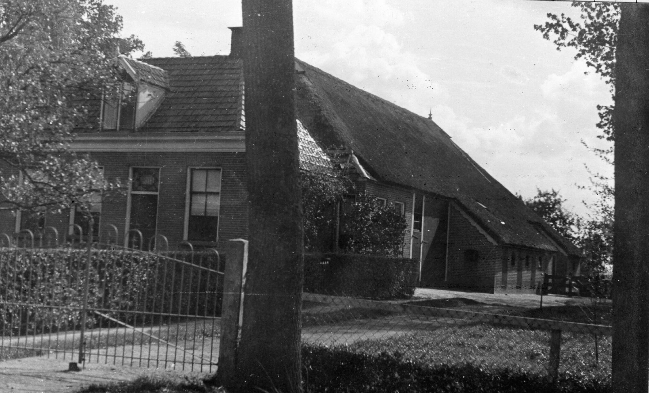 Boerderij en toegangshek, Kolderveen, 1936 (zwart-wit negatief)