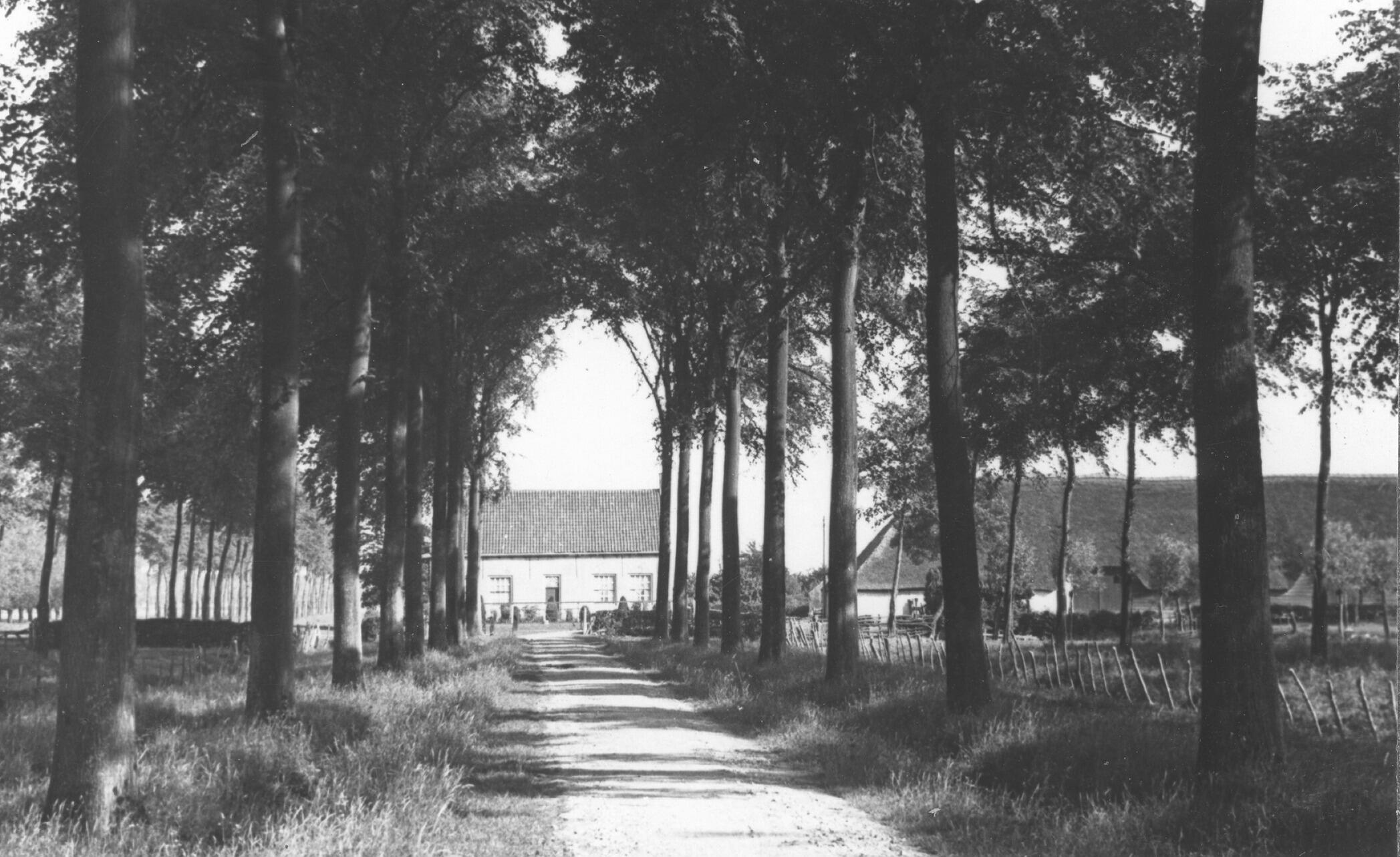 Oprijlaan naar een boerderij, Schoondijke, 1936 (zwart-wit negatief)