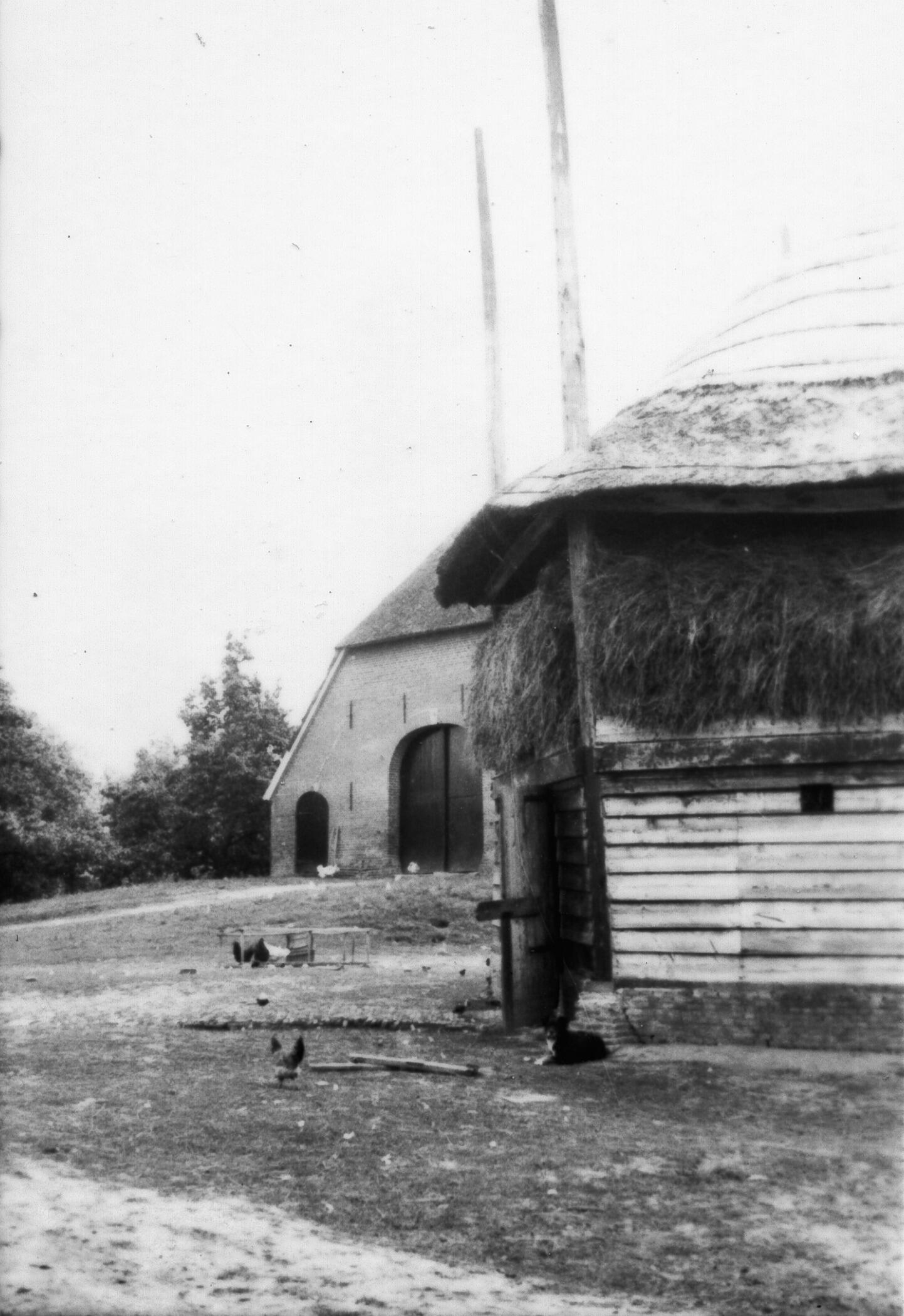 Hooiberg en vloedschuur, Zetten, 1936 (zwart-wit foto)