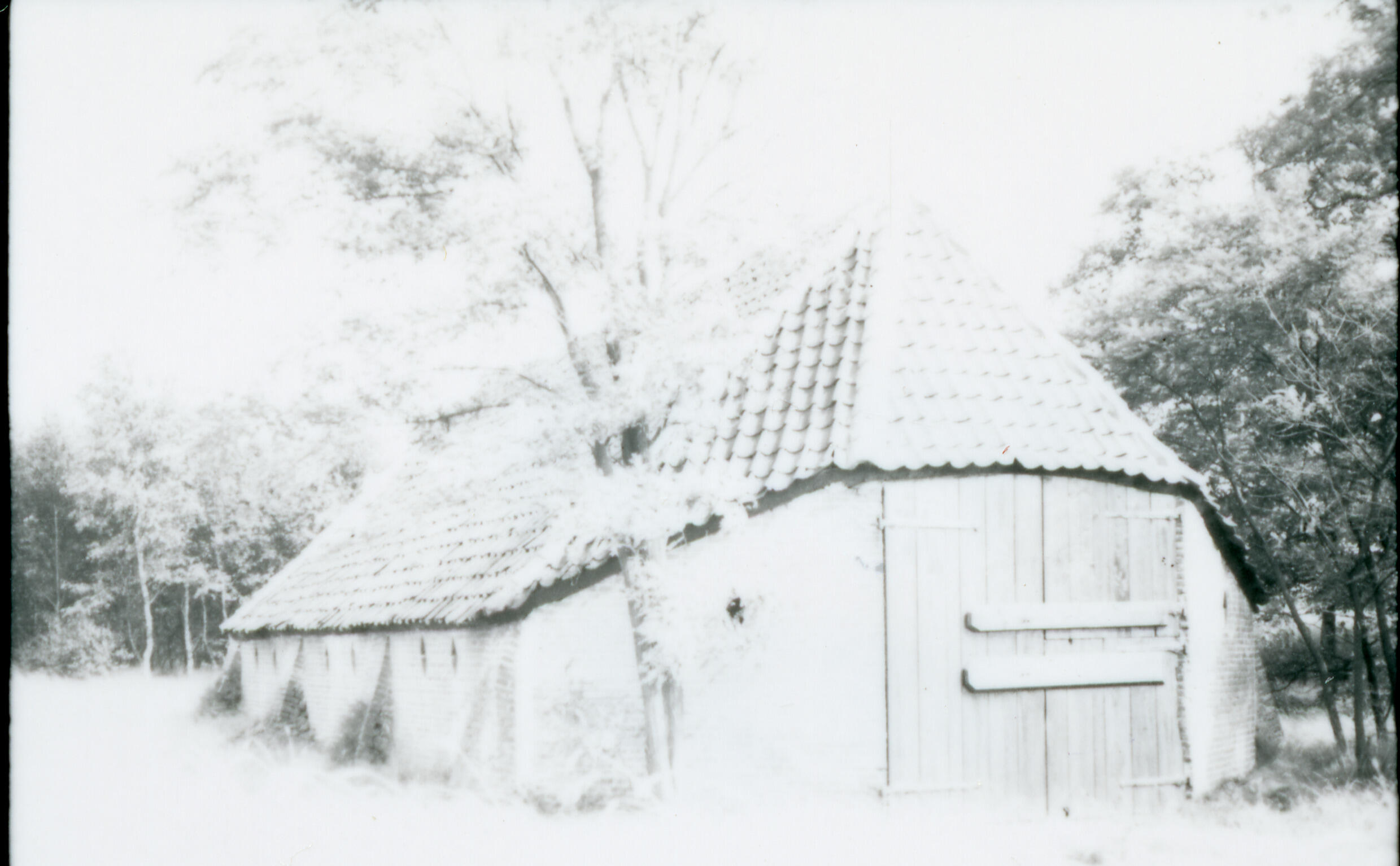 Schaapskooi met een pannendak op de Keyenberg bij het Gelderse Renkum. De foto is overbelicht.