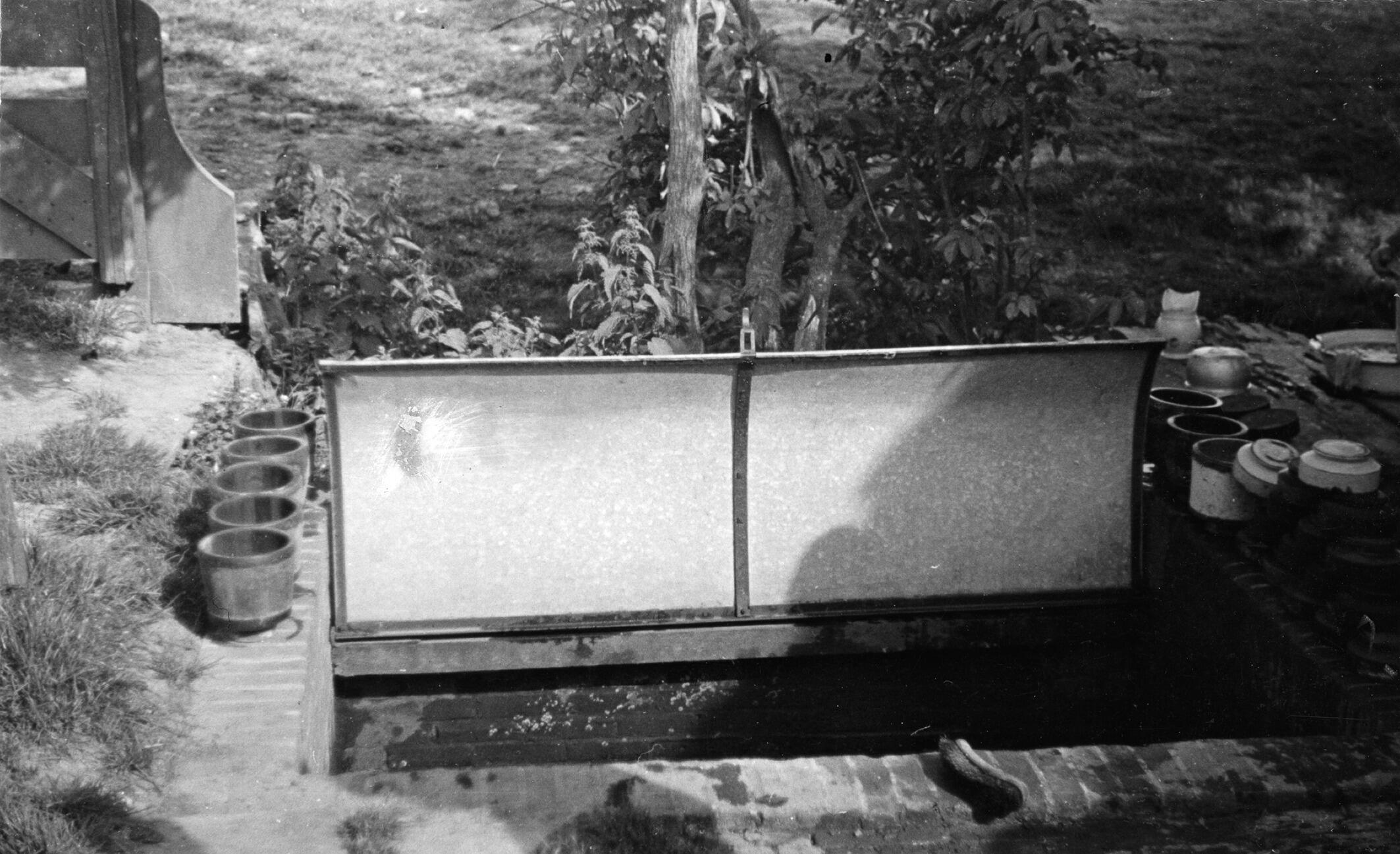 Melkkoelbak in de grond met een deksel, bij een boerderij in het Noord-Hollandse Schermer.